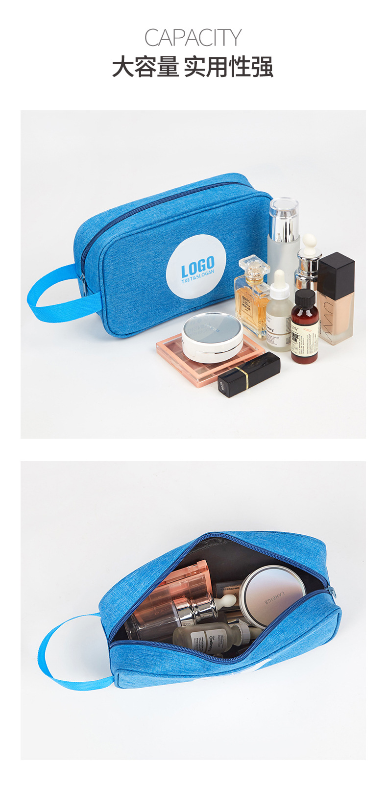 Fabricante de nueva bolsa de belleza logotipo impreso de gran capacidad producto de cuidado de la piel bolsa de almacenamiento multifuncional bolsa de cosméticos portátil