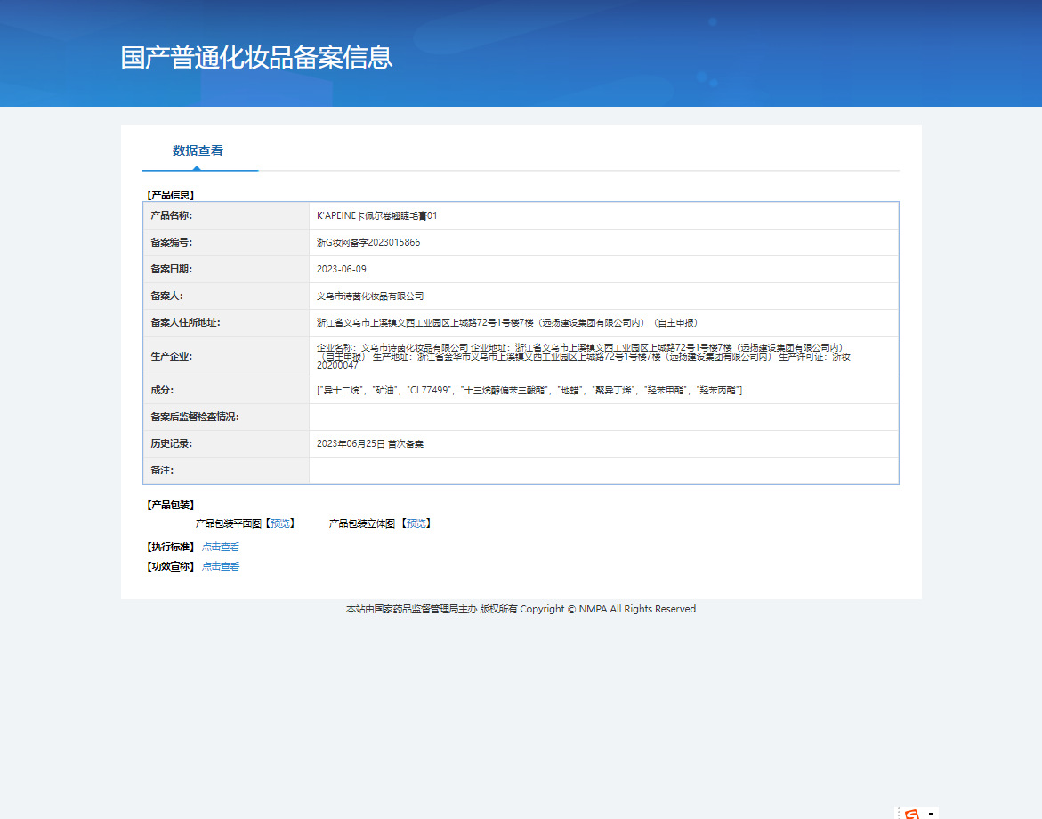 | Número de Certificado de presentación de productos no cosméticos | Número de preparación de la red de maquillaje de Zhejiang G 2023015867 |