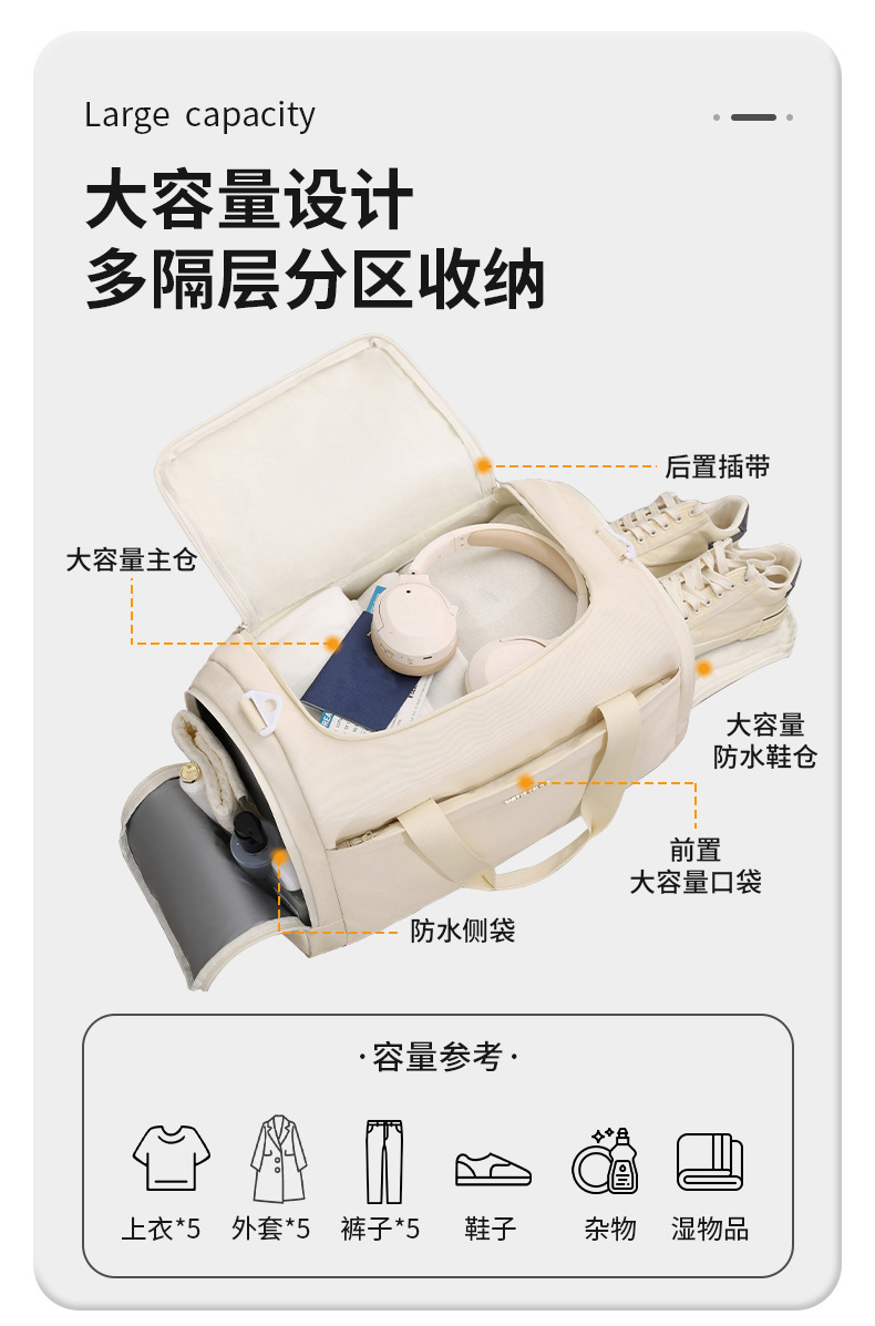 La nueva bolsa de viaje multiusos de la película Ruitu, bolsa de fitness de separación seca y húmeda, almacén de zapatos, fabricante de bolsos de gran capacidad