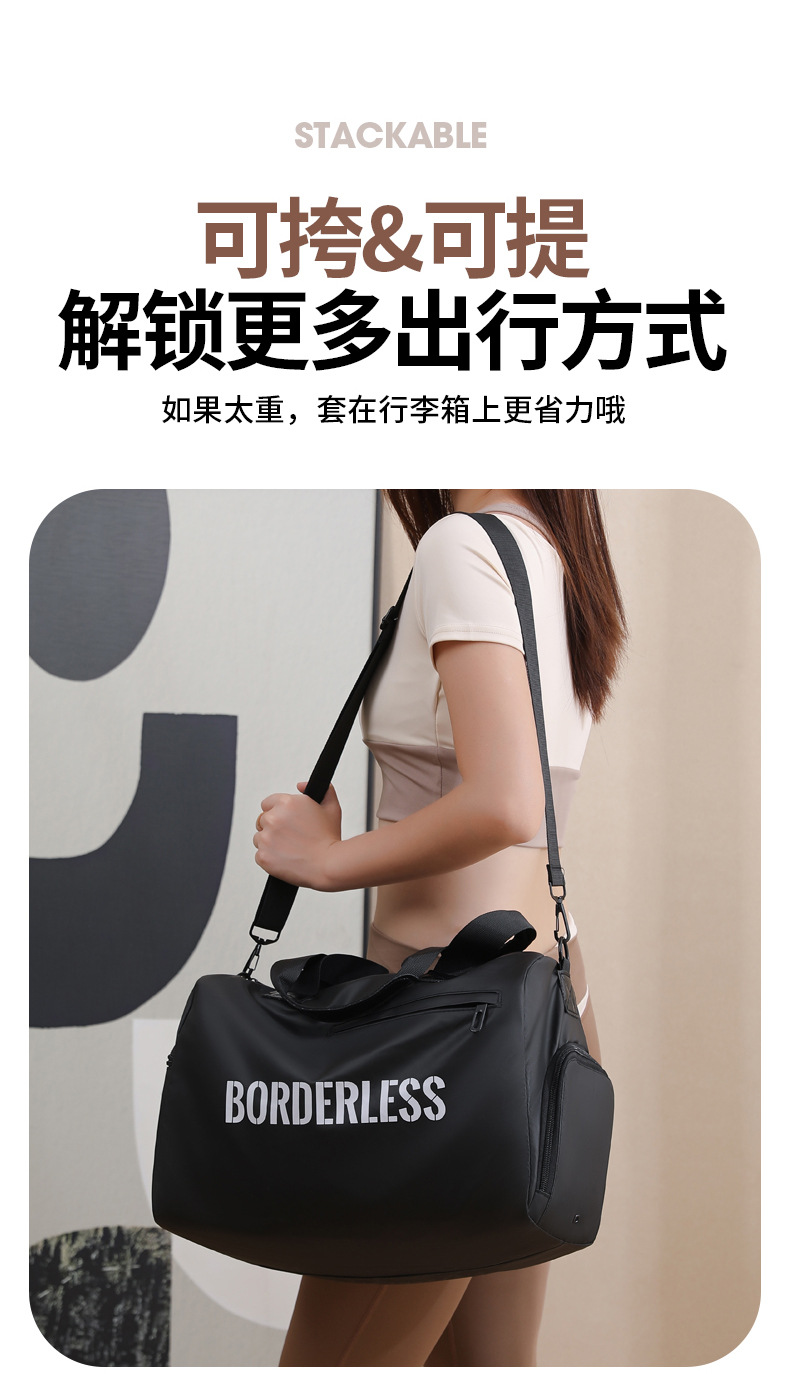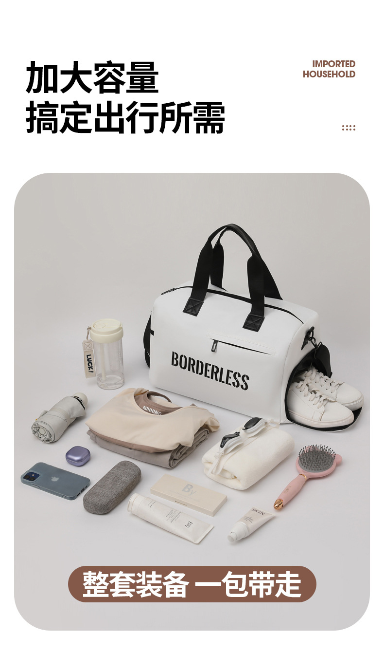 润晖新款轻旅手提包带鞋仓600D皮膜健身包干湿分离包大容量旅行包