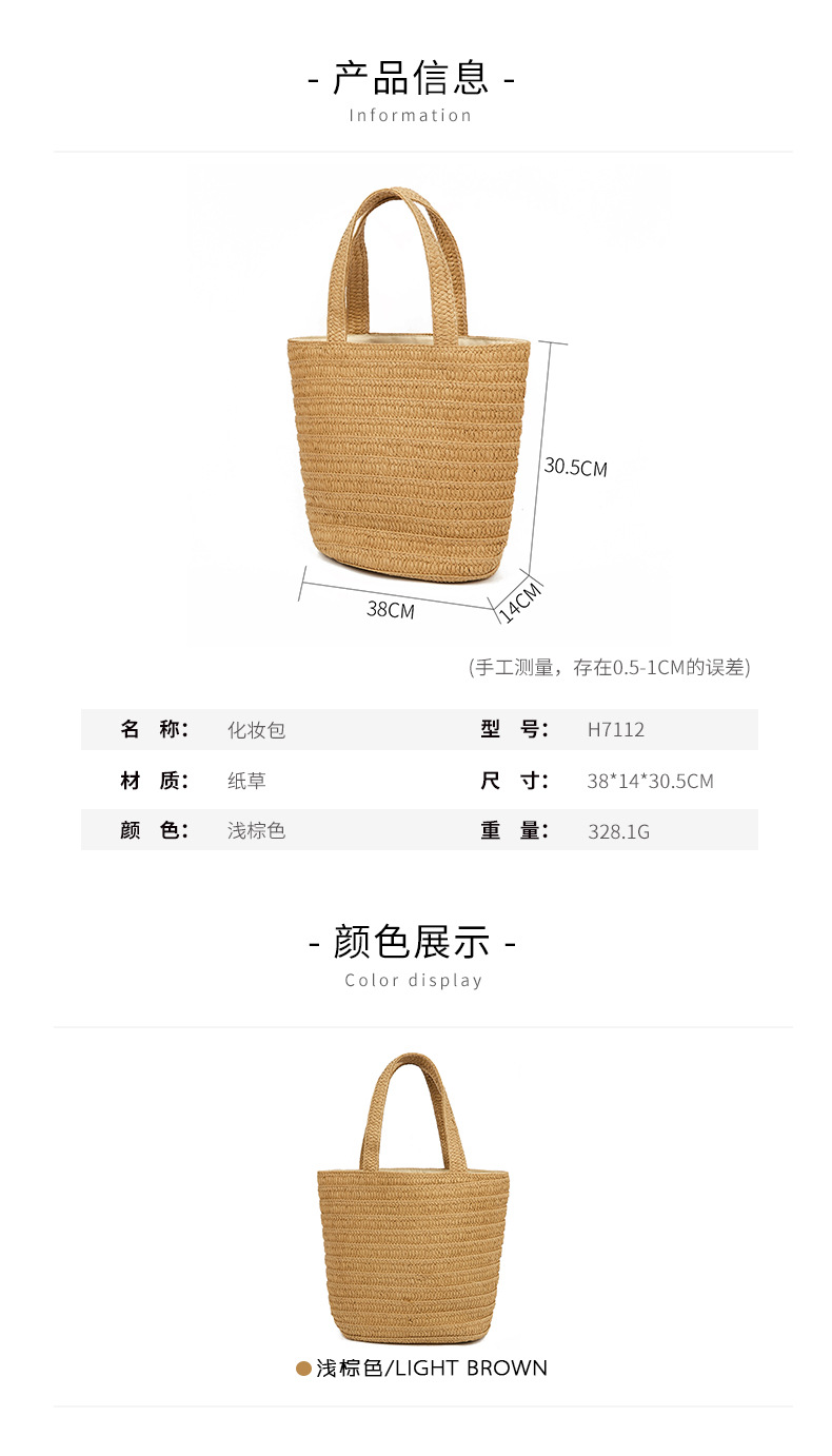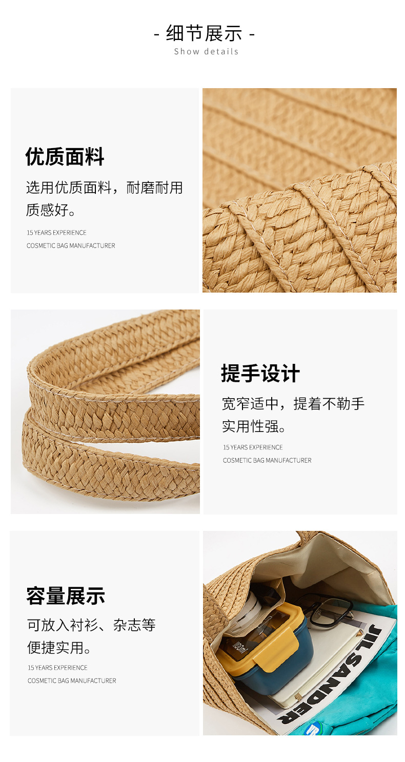 2023 bolso protección del medio ambiente material de paja de papel bolsa de viaje de gran capacidad simple bolsa de almacenamiento multifuncional japonesa