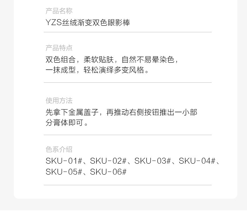 | Nombre del producto | Sombra de ojos de dos colores con degradado de terciopelo YZS |