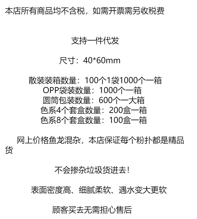 | Especificaciones | Color 4 Pack (caja transparente),Color 4 Pack (Caja de color),Color 4 Pack (OPP Bolsa),Color Series 8 piezas (caja transparente),Color Series 8 Pack (Caja de color),3 bolsas,2 cajas (color/forma cualquier partido),Cáscara de huevo rosa (forma aleatoria),Cáscara de huevo verde (forma aleatoria),Barril (corte oblicuo),Barril (gota de agua),Barril (Gourd),Bolsas (Gourd),Bolsas (gotas de agua),Bolsas (corte oblicuo),A granel (gotas de agua),A granel (biselados),A granel (Gourd) |