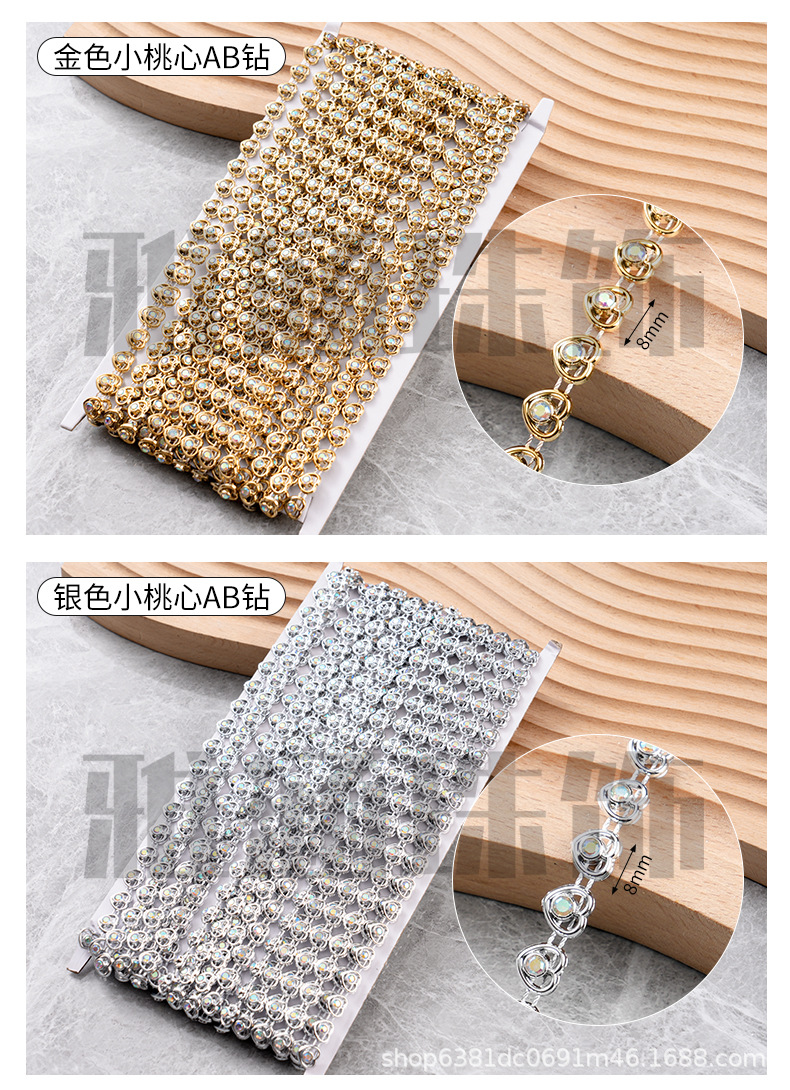 | Colores | Diamante AB de corazón de melocotón dorado 10 yardas/tarjeta (9 metros de largo),Diamante AB de corazón de melocotón pequeño plateado 10 yardas/tarjeta (9 metros de largo),Diamante AB dorado 10 yardas/tarjeta (9 metros de largo),Diamante plateado AB 10 yardas/tarjeta (9 metros de largo),Diamante AB triángulo pequeño dorado 10 yardas/tarjeta (9 metros de largo),Diamante plateado pequeño triángulo AB 10 yardas/tarjeta (9 metros de largo),Flor de mariposa dorada AB diamante 10 yardas/tarjeta (9 metros de largo),Flor de mariposa pequeña plateada AB diamante 10 yardas/tarjeta (9 metros de largo),Diamante AB de gota de agua dorada 10 yardas/tarjeta (9 metros de largo),Diamante AB de gota de agua pequeña plateada 10 yardas/tarjeta (9 metros de largo),Doble D oro fondo AB taladro 10 yardas/tarjeta (9 metros de largo),Doble D plata inferior AB taladro 10 yardas/tarjeta (9 metros de largo) |
