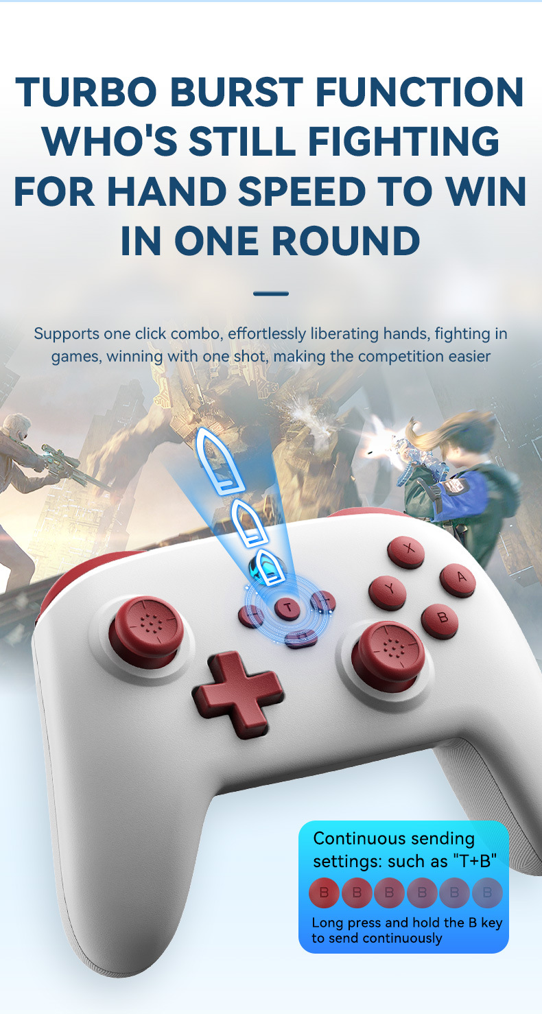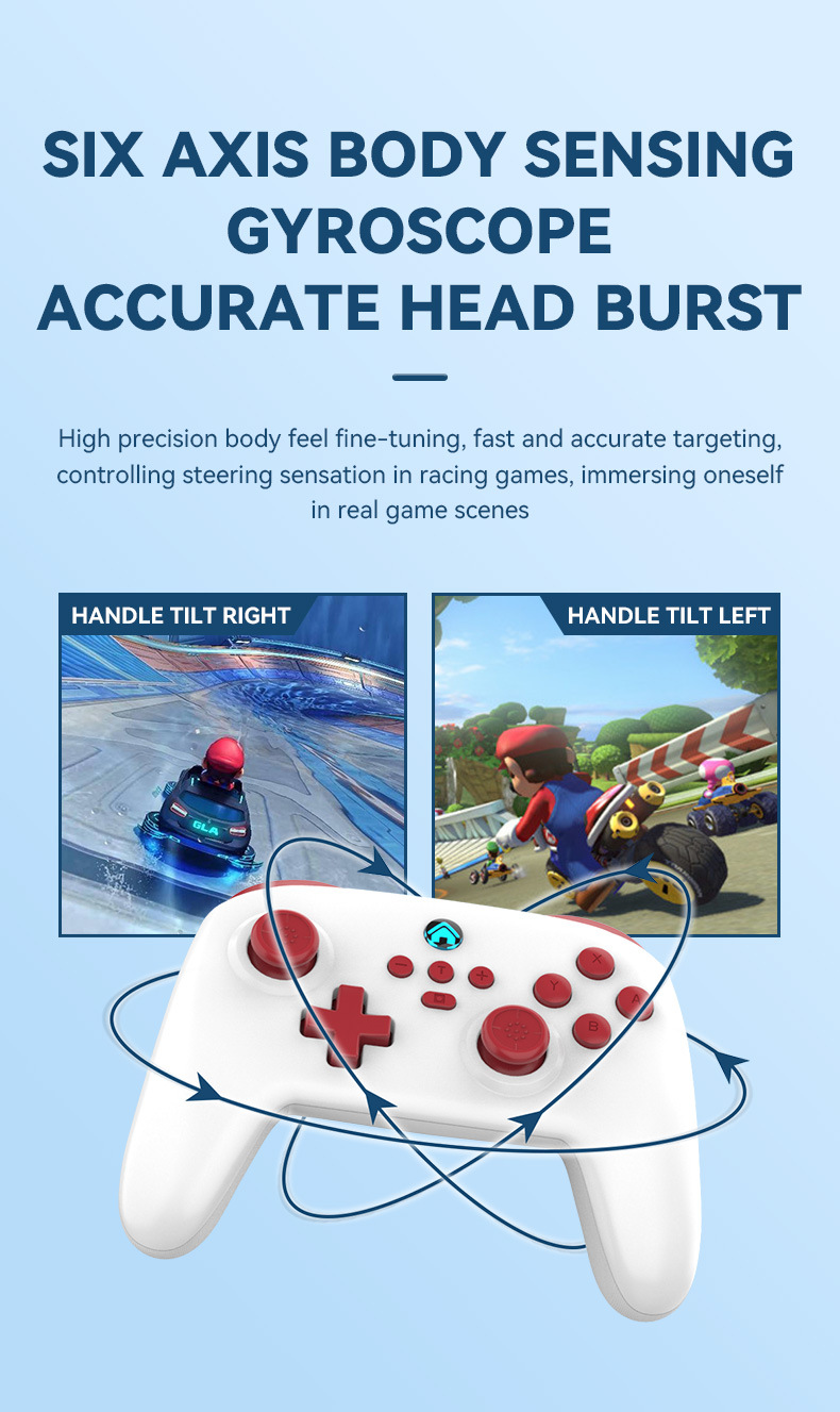 1)支持一键唤醒、TURBO连发、双震动马达、六轴体感功能。