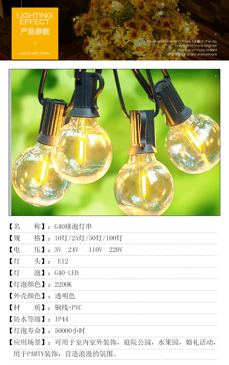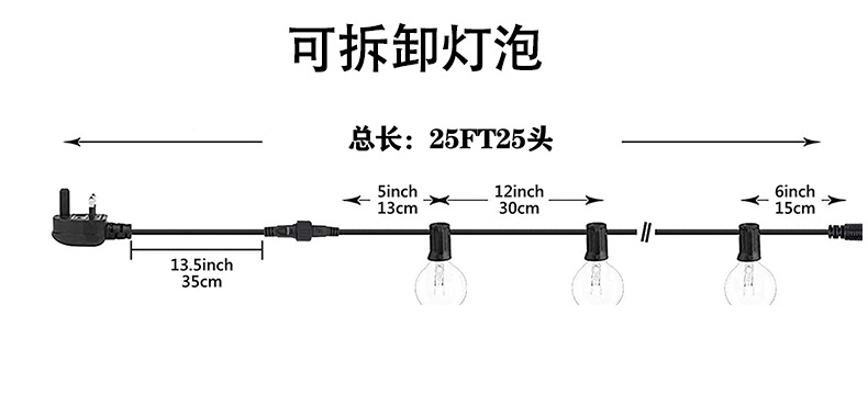 | Especificaciones | 10FT10 lámpara (3 m 10 lámpara),25FT25 luces (7,6 m 25 cabezas),50FT50 luz |