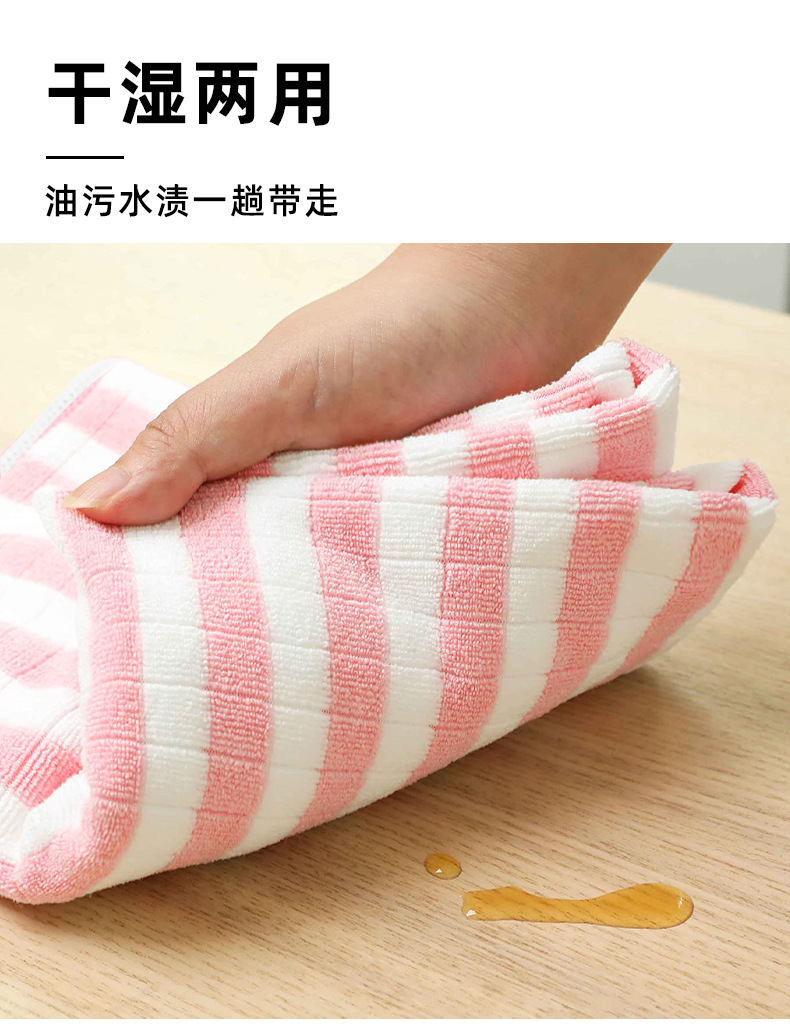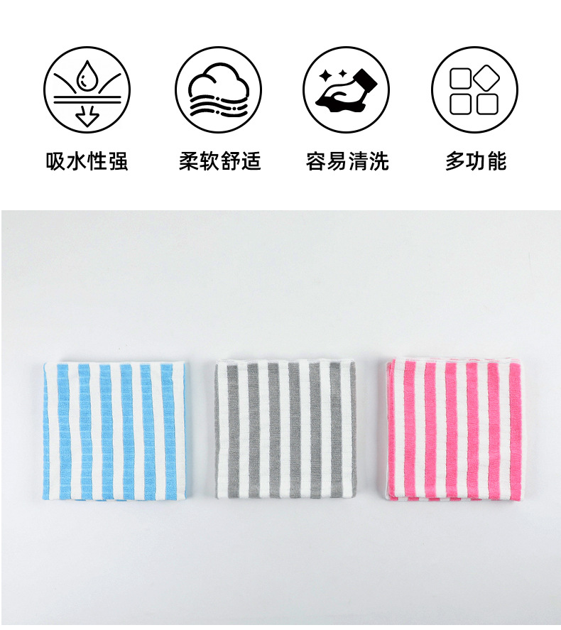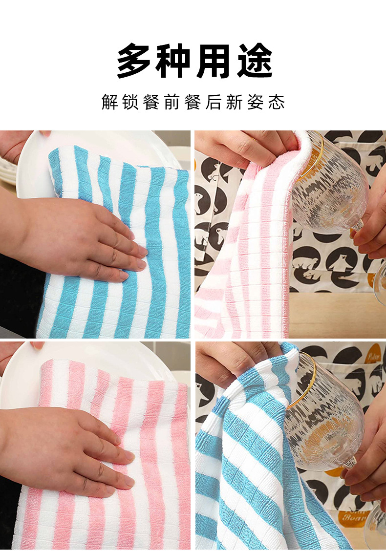 Toalla de limpieza a rayas catiónicas, trapo absorbente para limpieza de cocina, toalla para mesa, estropajo multifuncional