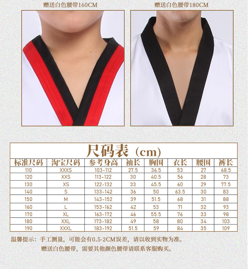 | Colores | Traje corto de verano,Traje corto de verano de secado rápido (rayas azules),Traje profesional transpirable con patrón de diamante KR (cuello rojo y negro XXXS-M, cuello negro por encima de L),Ropa taoísta de la serie de rayas Shangwu (cuello rojo y negro XXXS-M, cuello negro por encima de L) |