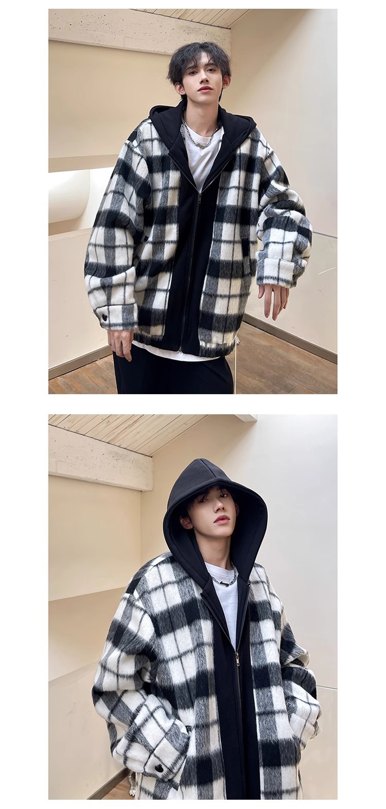 Chaqueta de lana a cuadros para hombres, chaqueta de estilo perezoso de marca de moda suelta de otoño, primavera y otoño ins, ropa de calle de moda coreana