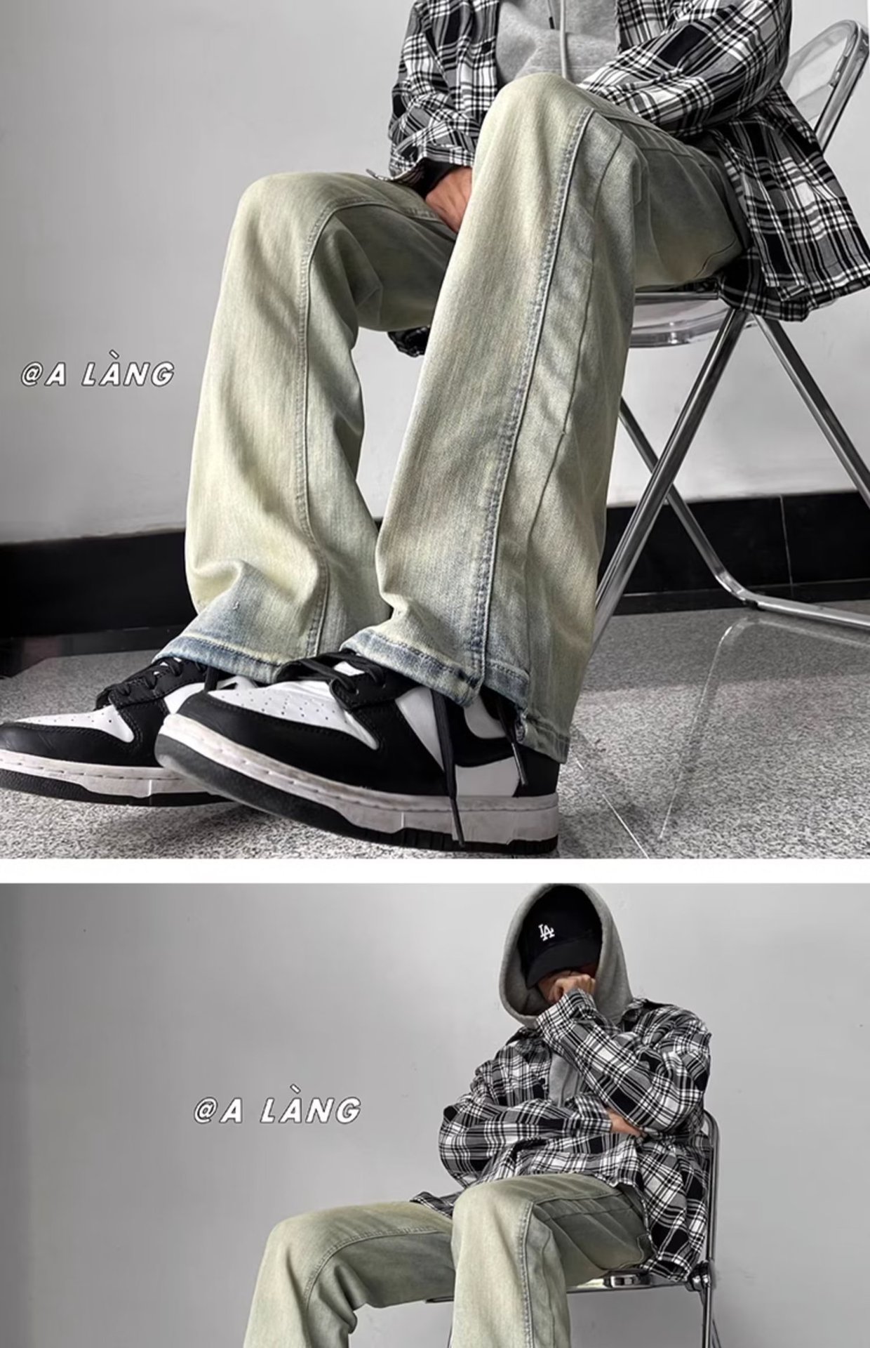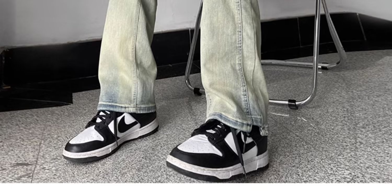 Estilo de moda estilo de Hong Kong jeans rectos sueltos hombres 2024 primavera y otoño nueva marca de moda pantalones casuales de todo fósforo pantalones de trapeador