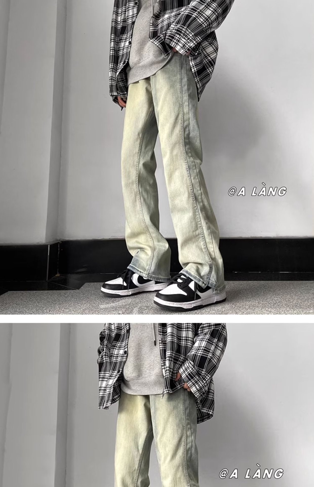 Pantalones de mezclilla teñidos de barro amarillo de alta calidad, belleza masculina, primavera y otoño, nuevos estilos, pantalones de pierna recta retro, control de red completo, alargado y súper largo