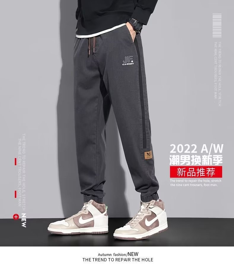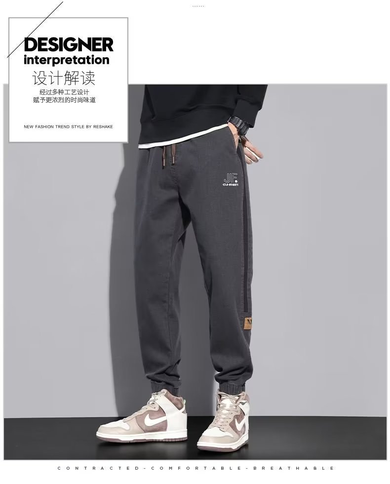 Pantalones casuales, marca de moda de otoño e invierno para hombres, pantalones bonitos, pantalones largos de Harlan de mezclilla de nuevo estilo, marea de gran tamaño para hombres