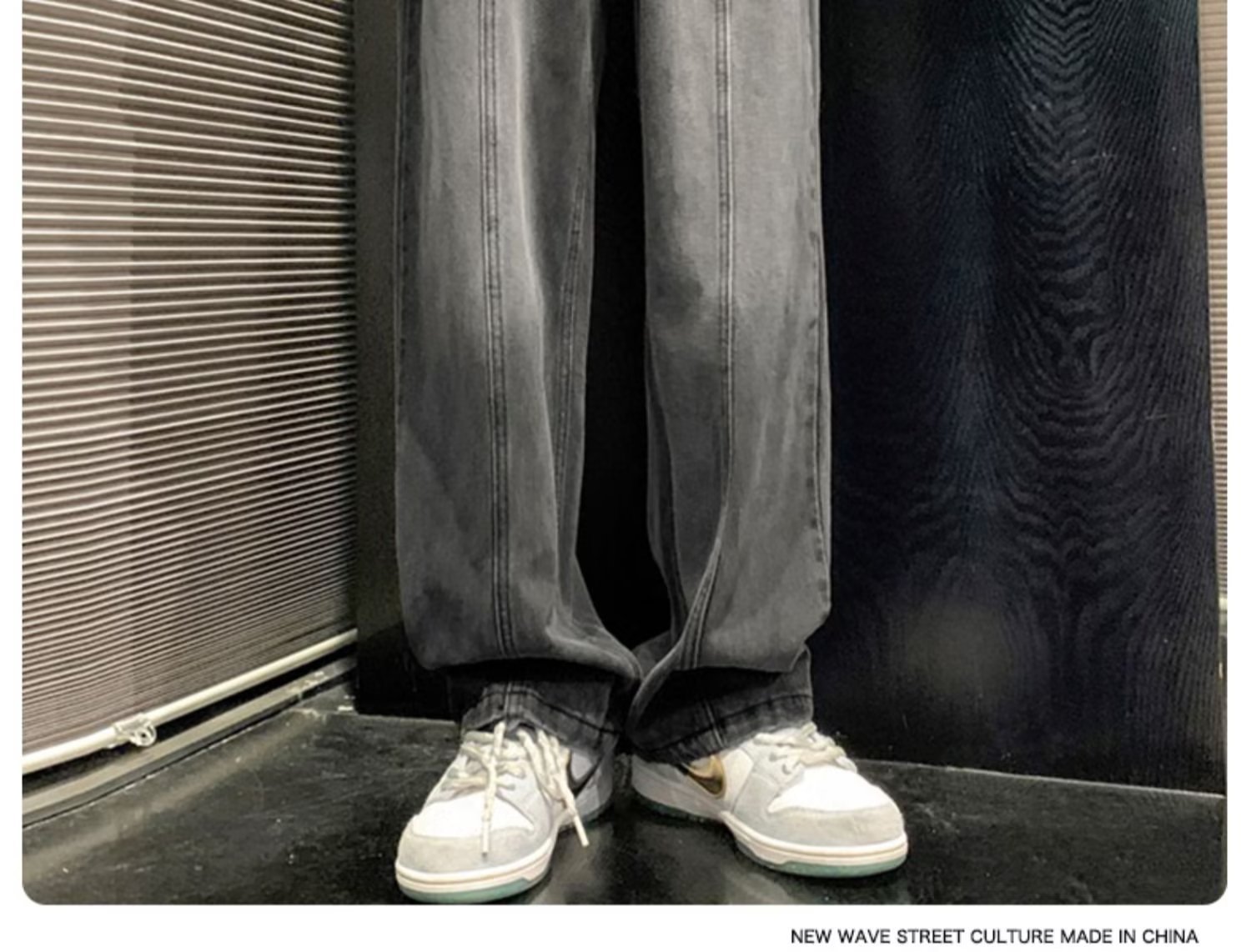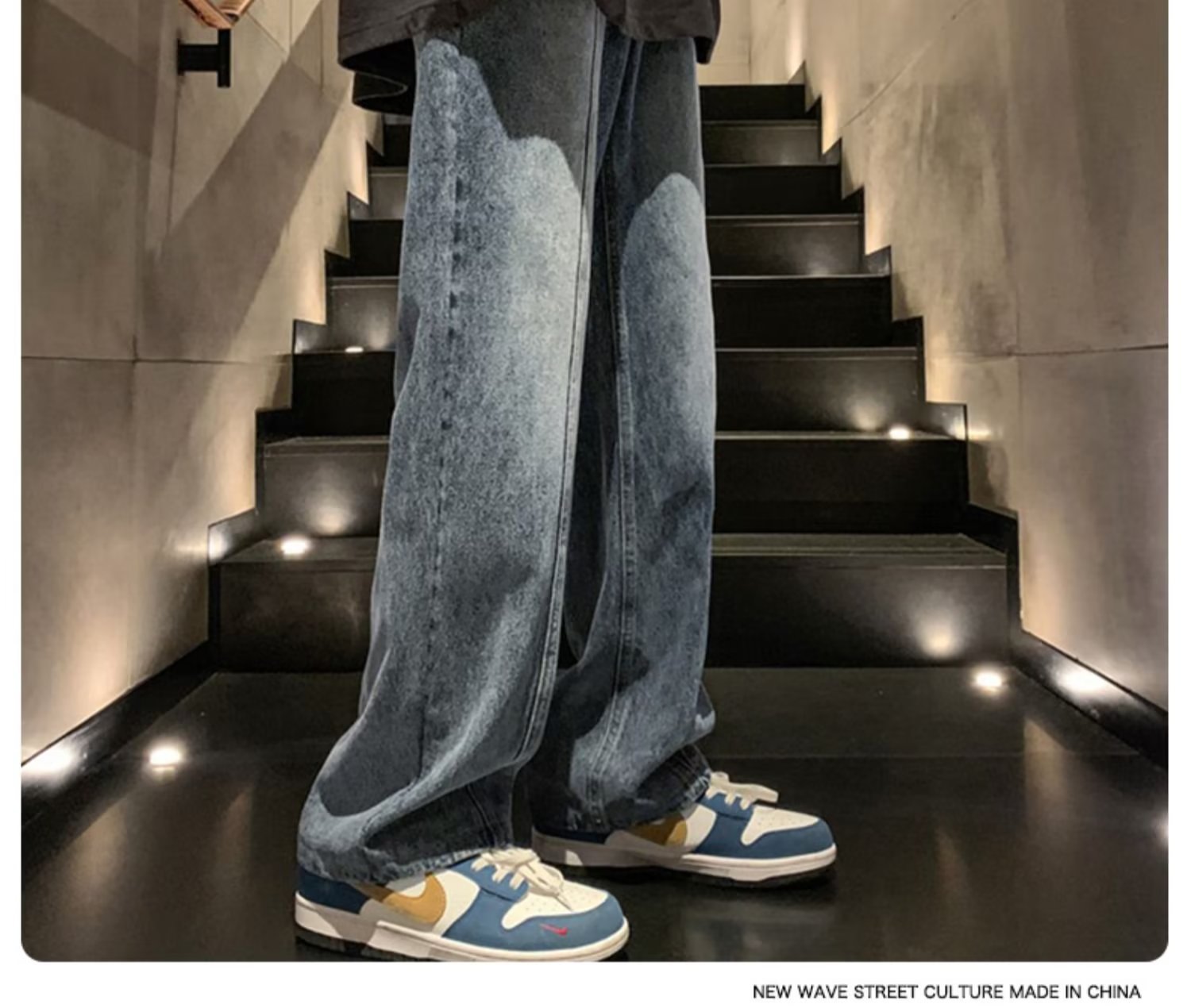 MTLCLOTHES Hombres| Coreano vibe lavado con agua estereoscópica gato barbudo en forma de A, jeans de pierna ancha rectos, moda universal