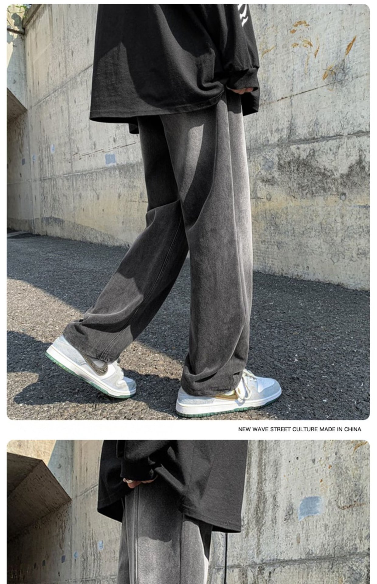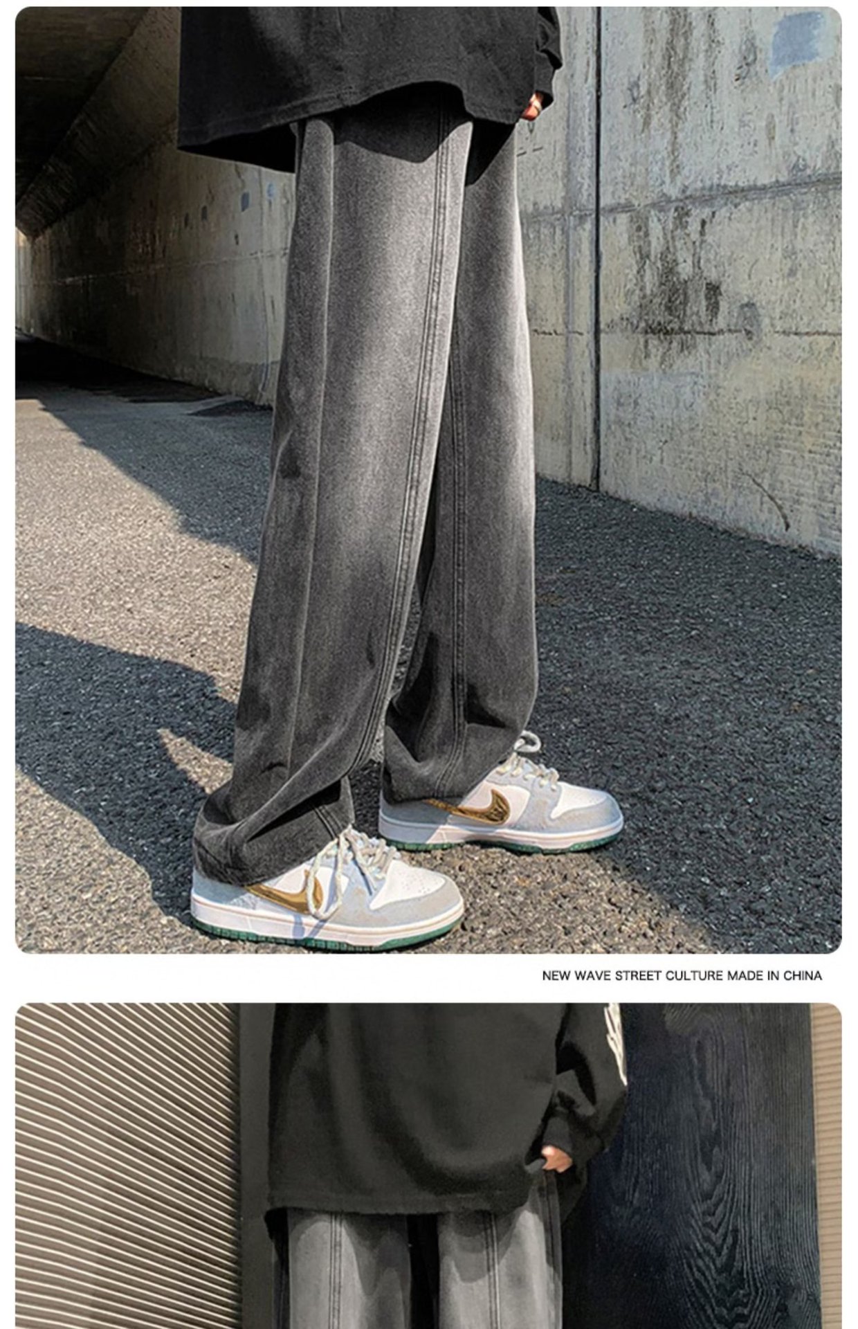 Vaqueros de diseño con cremallera de albaricoque lavados estadounidenses para hombres, pantalones rectos con ropa de trabajo informal de pierna ancha suelta de primavera