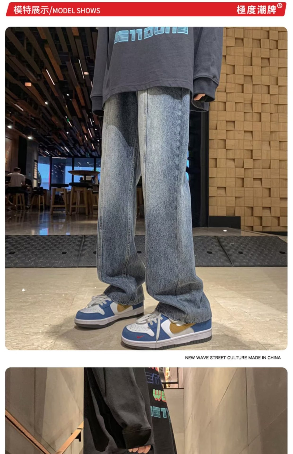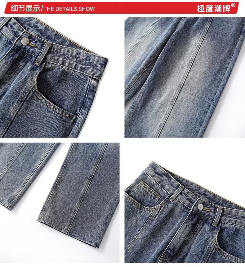 2024 primavera y otoño nuevo estilo americano recto retro lavado casual de gran tamaño pantalones de mezclilla desgastados de calle alta