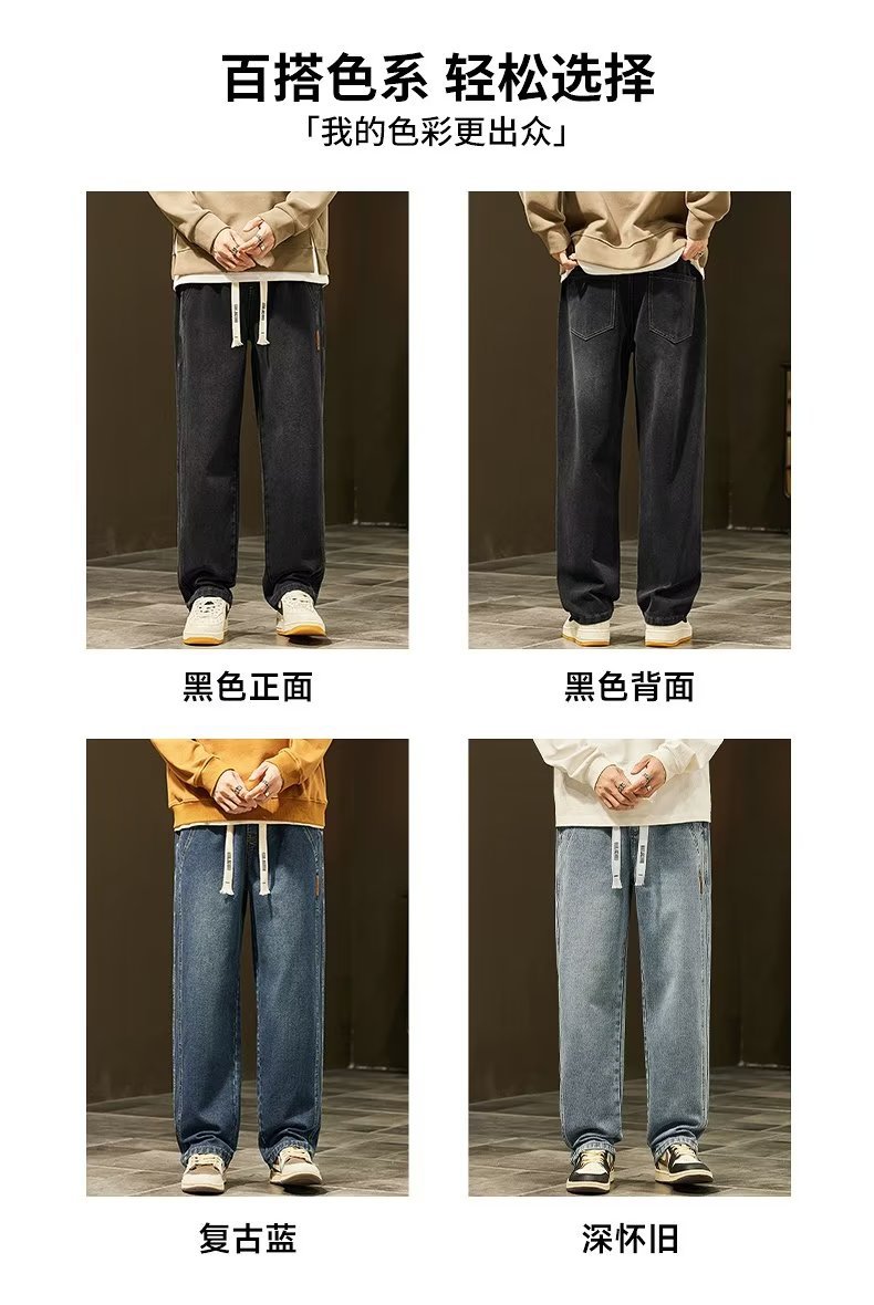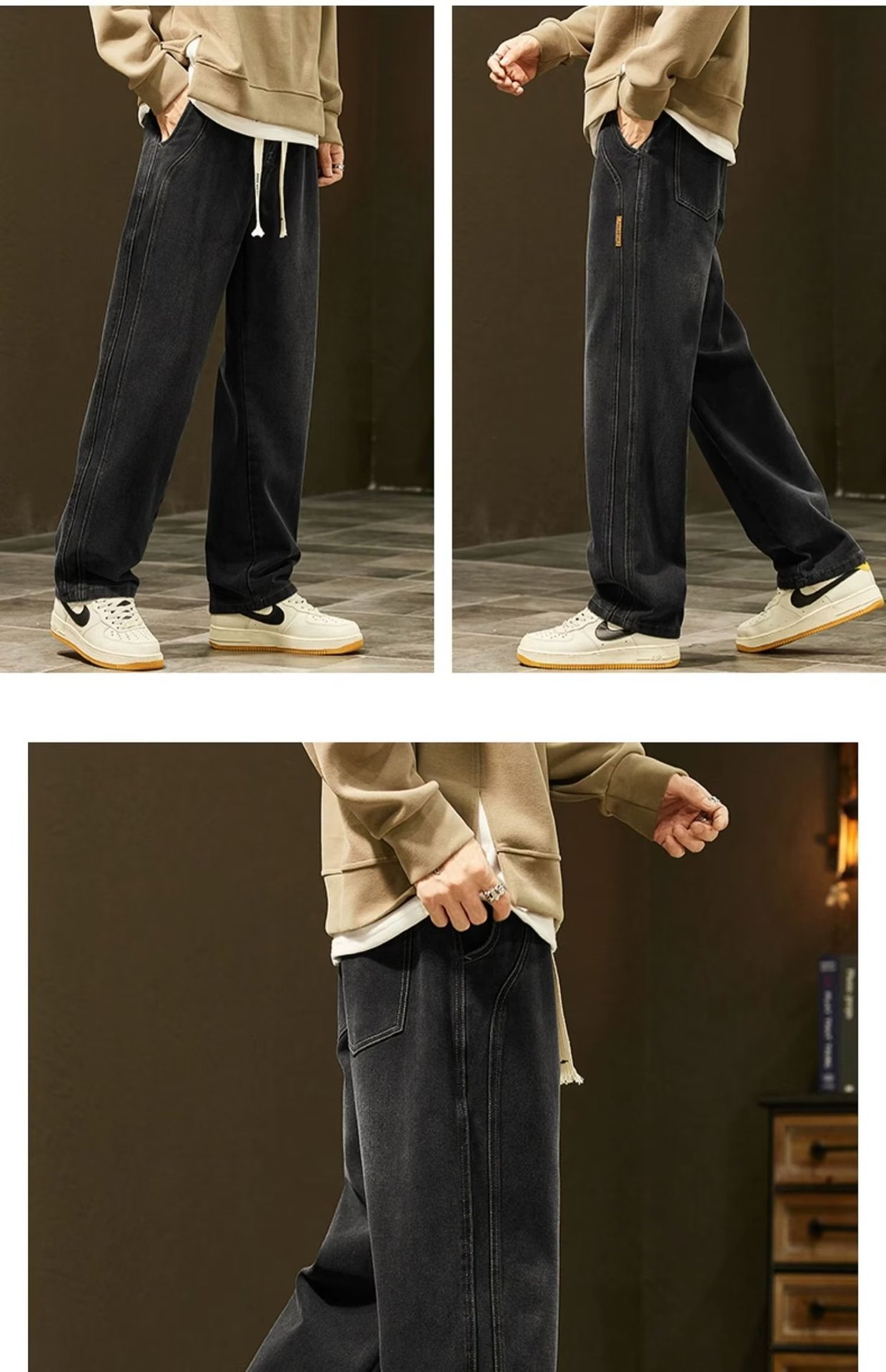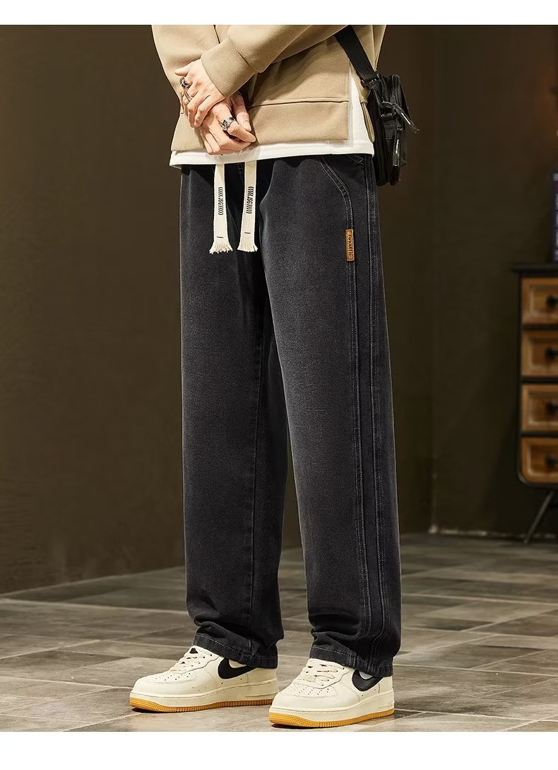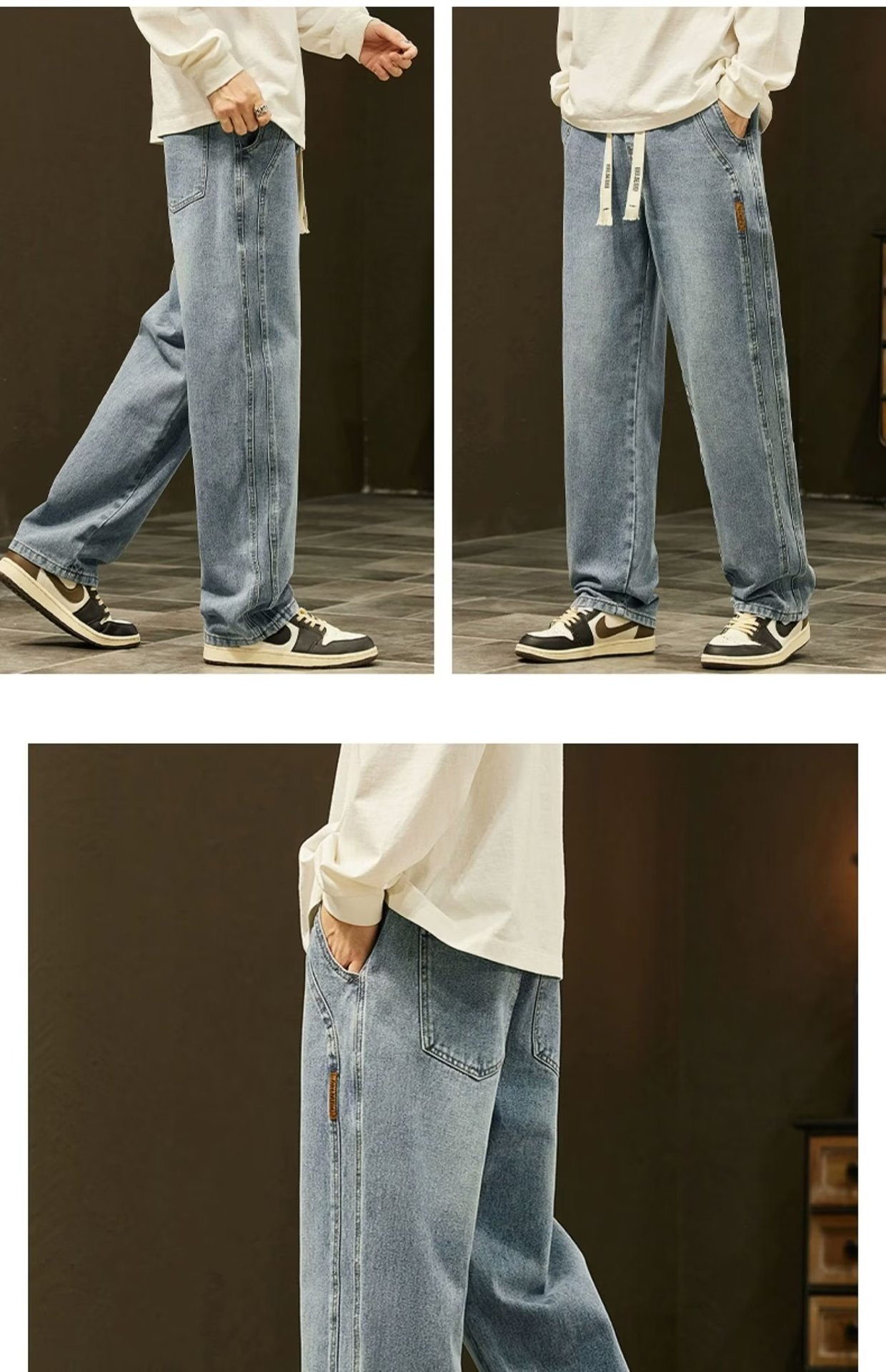 Otoño nuevos pantalones vaqueros elásticos de moda para hombres Pantalones rectos sueltos de cinta lateral juvenil pantalones de pierna ancha lavados versátiles