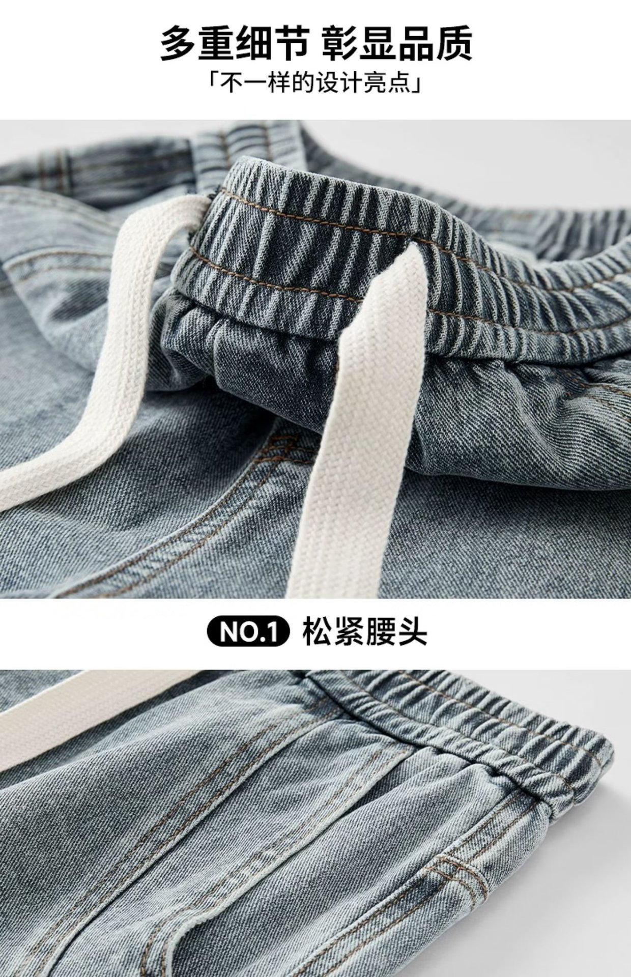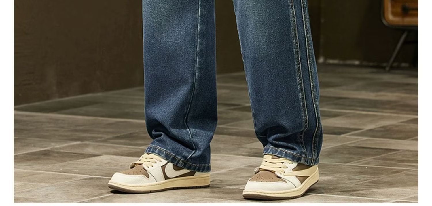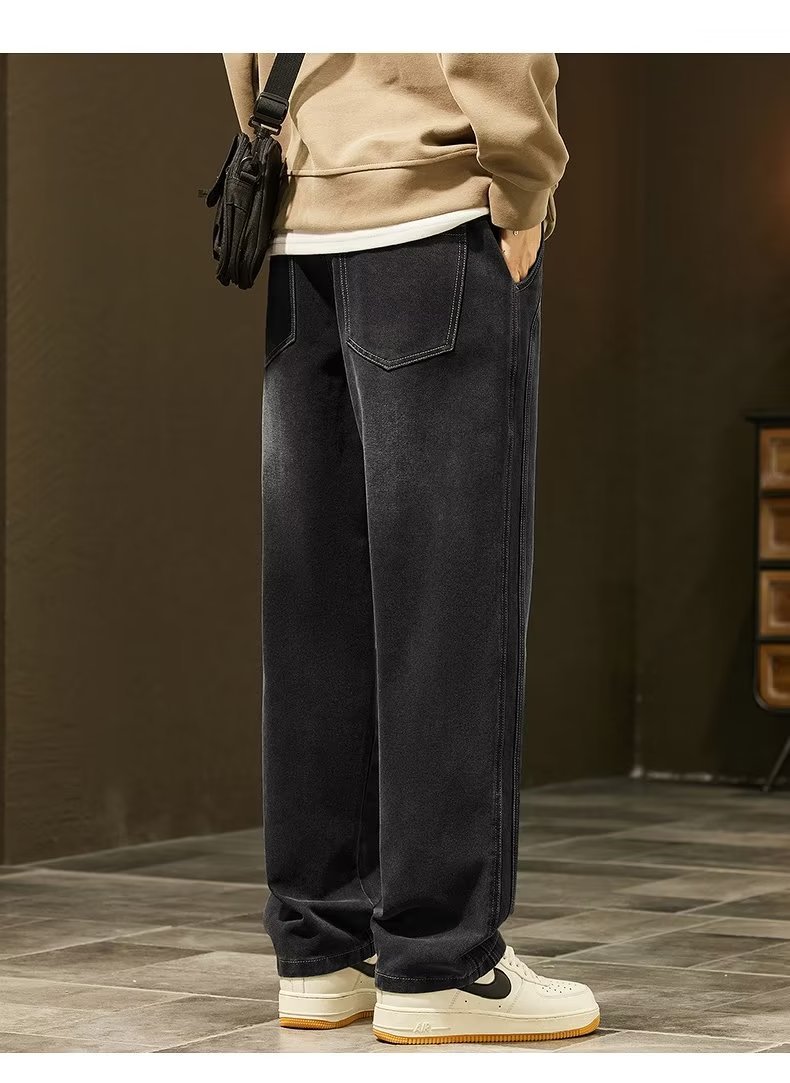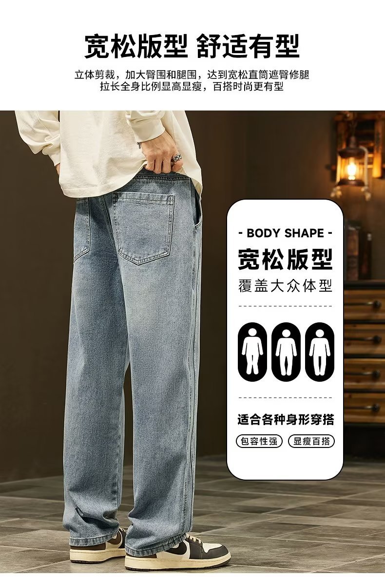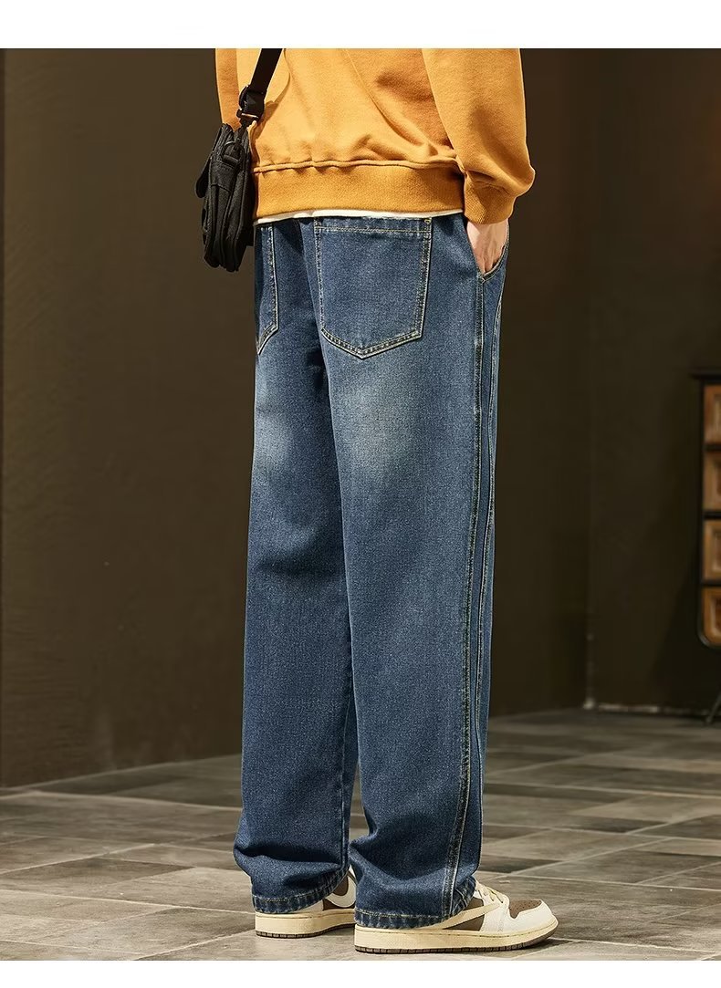 Otoño nuevos pantalones vaqueros elásticos de moda para hombres Pantalones rectos sueltos de cinta lateral juvenil pantalones de pierna ancha lavados versátiles
