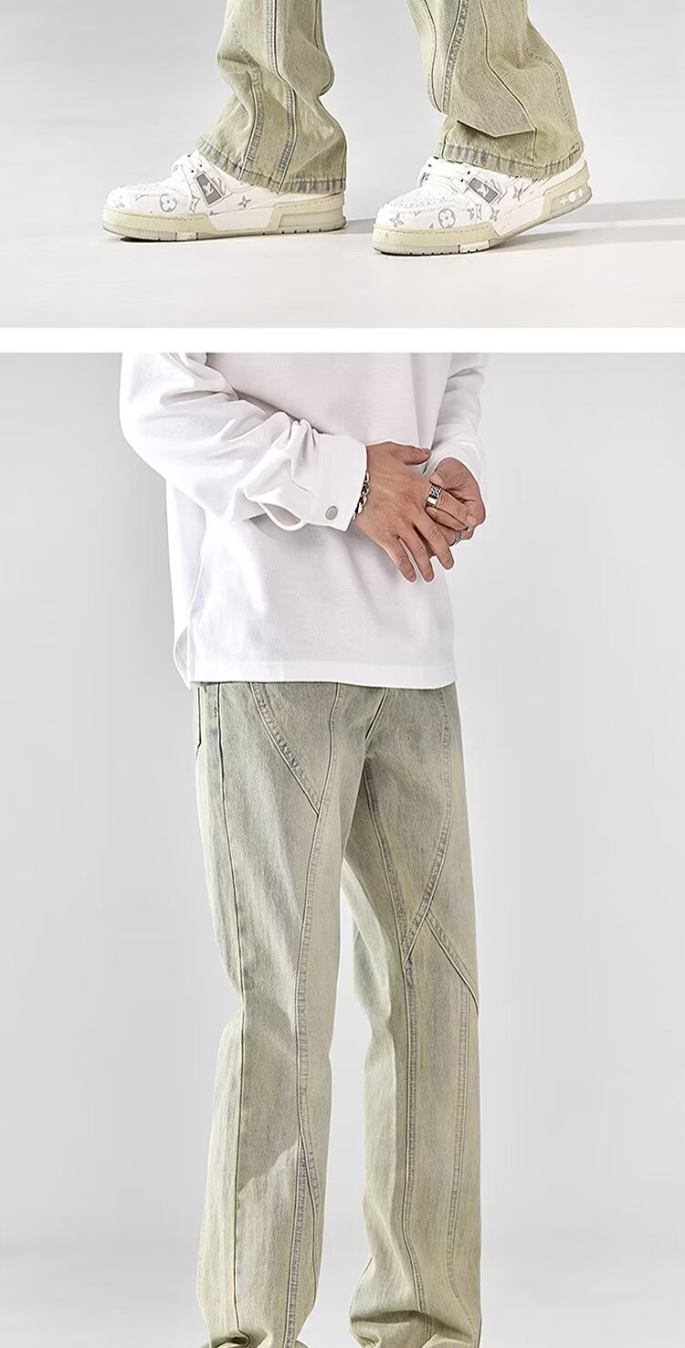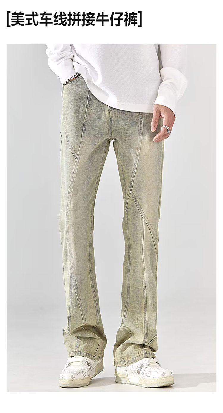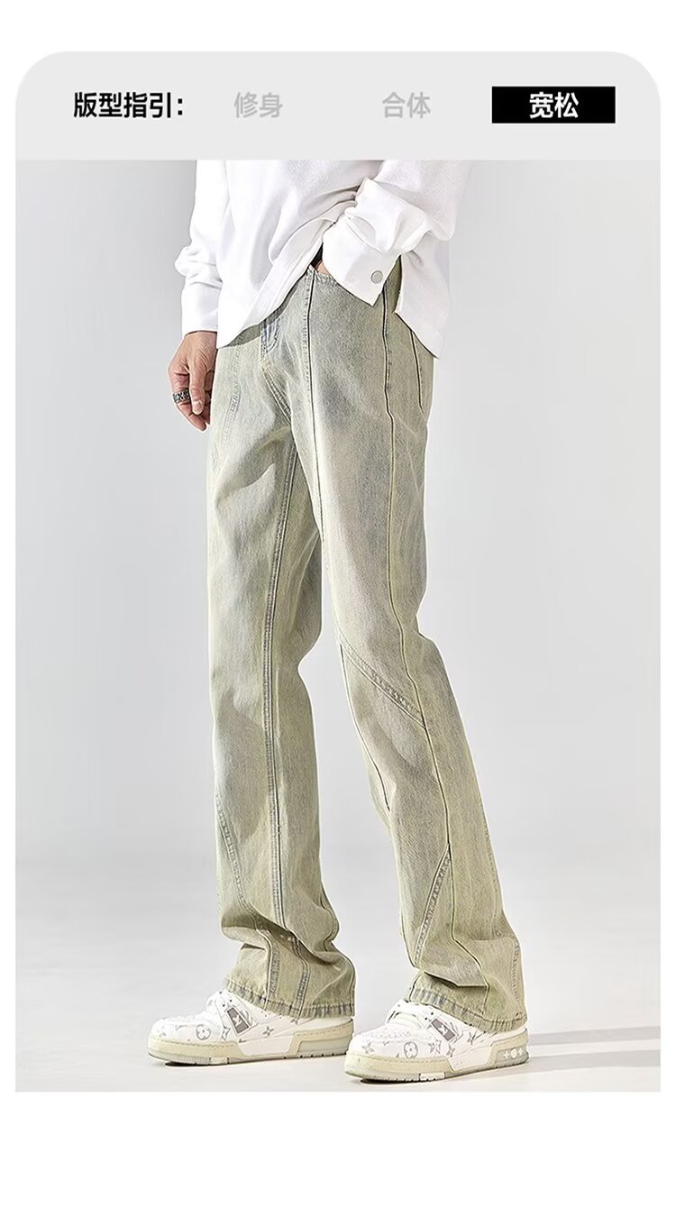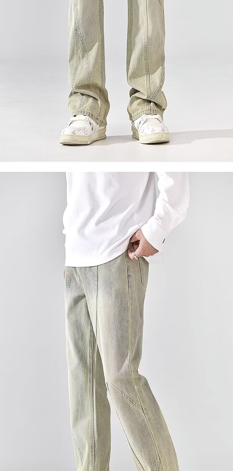 Pantalones retro estadounidenses, jeans teñidos de barro amarillo lavados en la calle, jeans rectos delgados y delgados para hombres