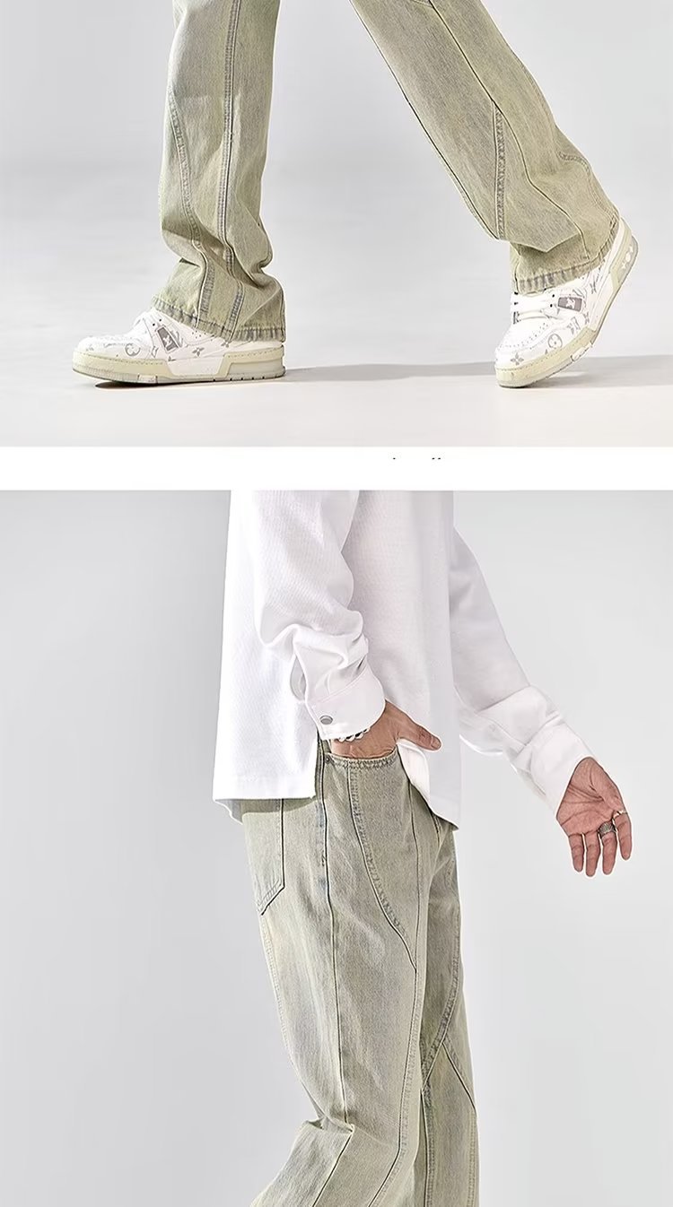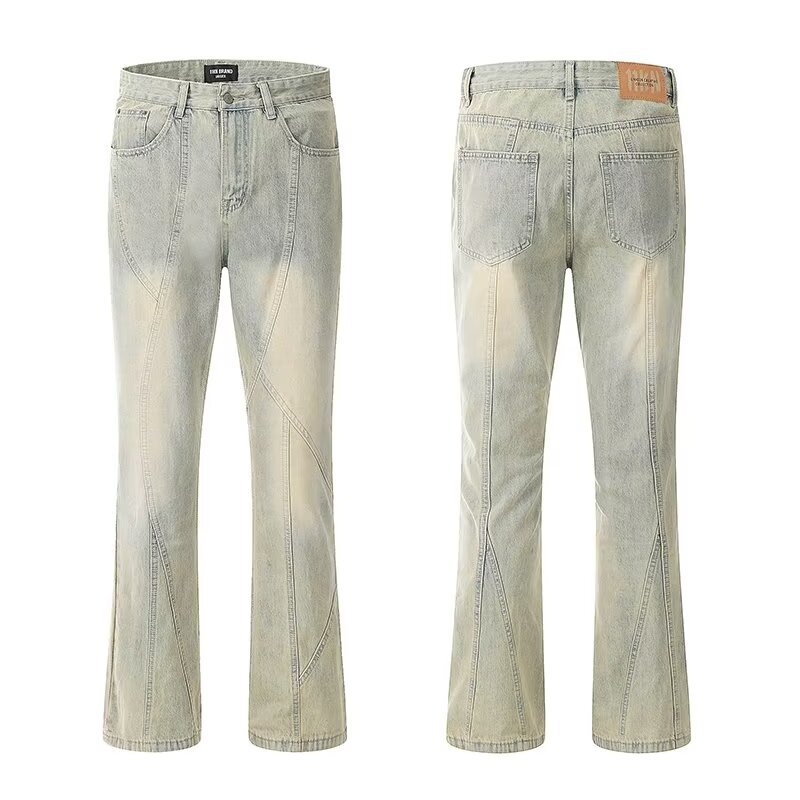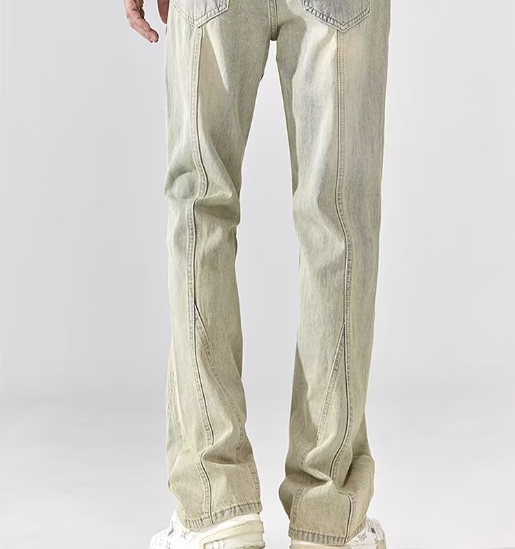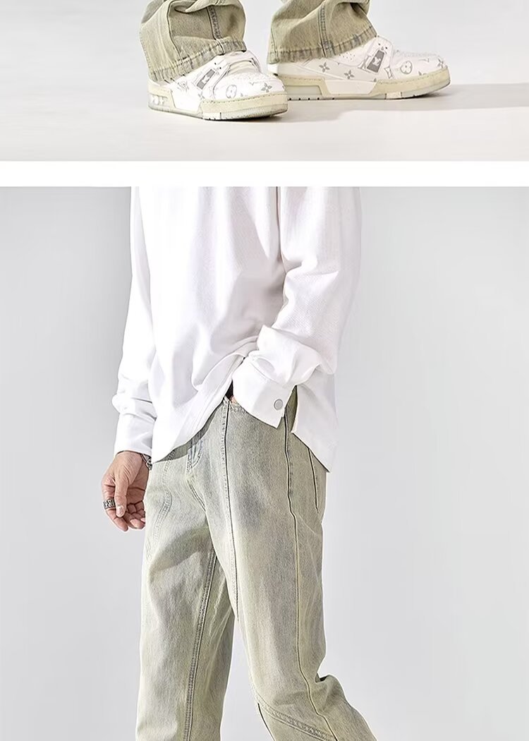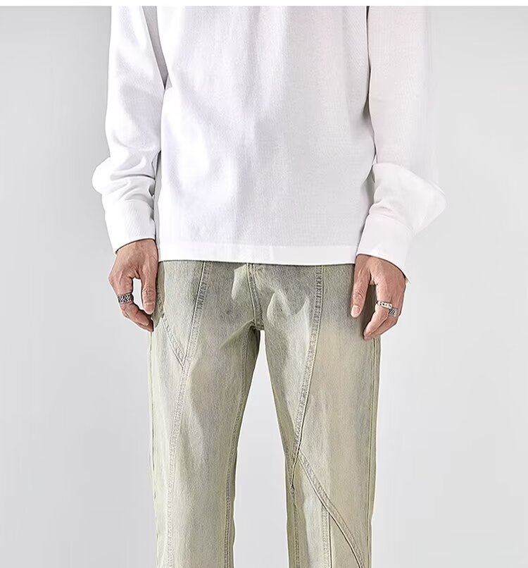 Pantalones retro estadounidenses, jeans teñidos de barro amarillo lavados en la calle, jeans rectos delgados y delgados para hombres