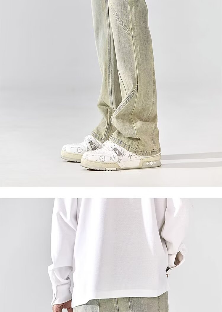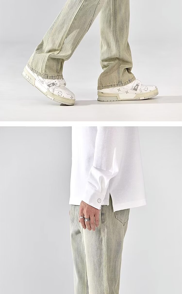 Pantalones vaqueros con botones viejos lavados de la calle americana Pantalones largos de estilo vibe rectos sueltos de primavera y otoño para hombres