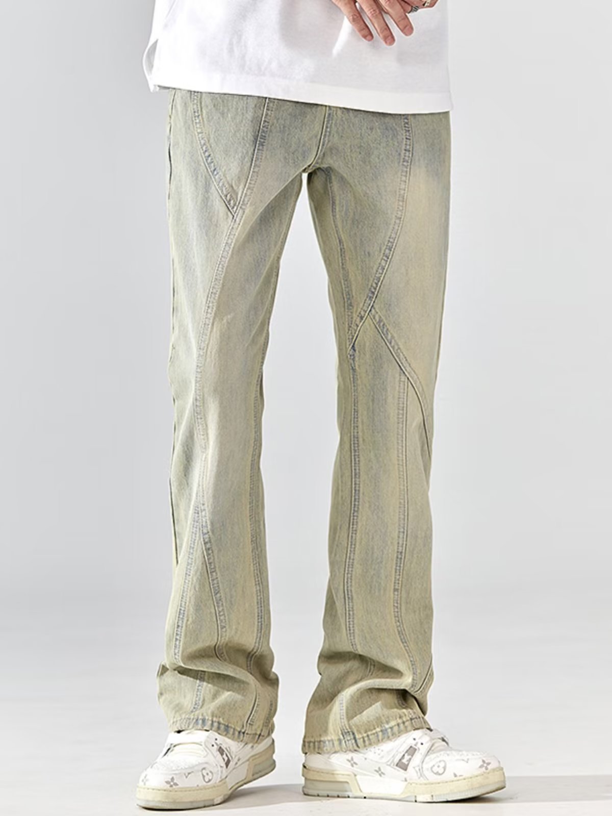 Lktm ropa de hombre # amarillo barro teñido apenado lavado impreso jeans hombres Vibe High Street Europa y América marca moda Pantalones rectos