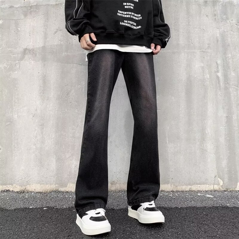 Primavera y otoño jeans negros marca de moda para hombres vibe pantalones anchos rectos sueltos pantalones casuales retro americanos