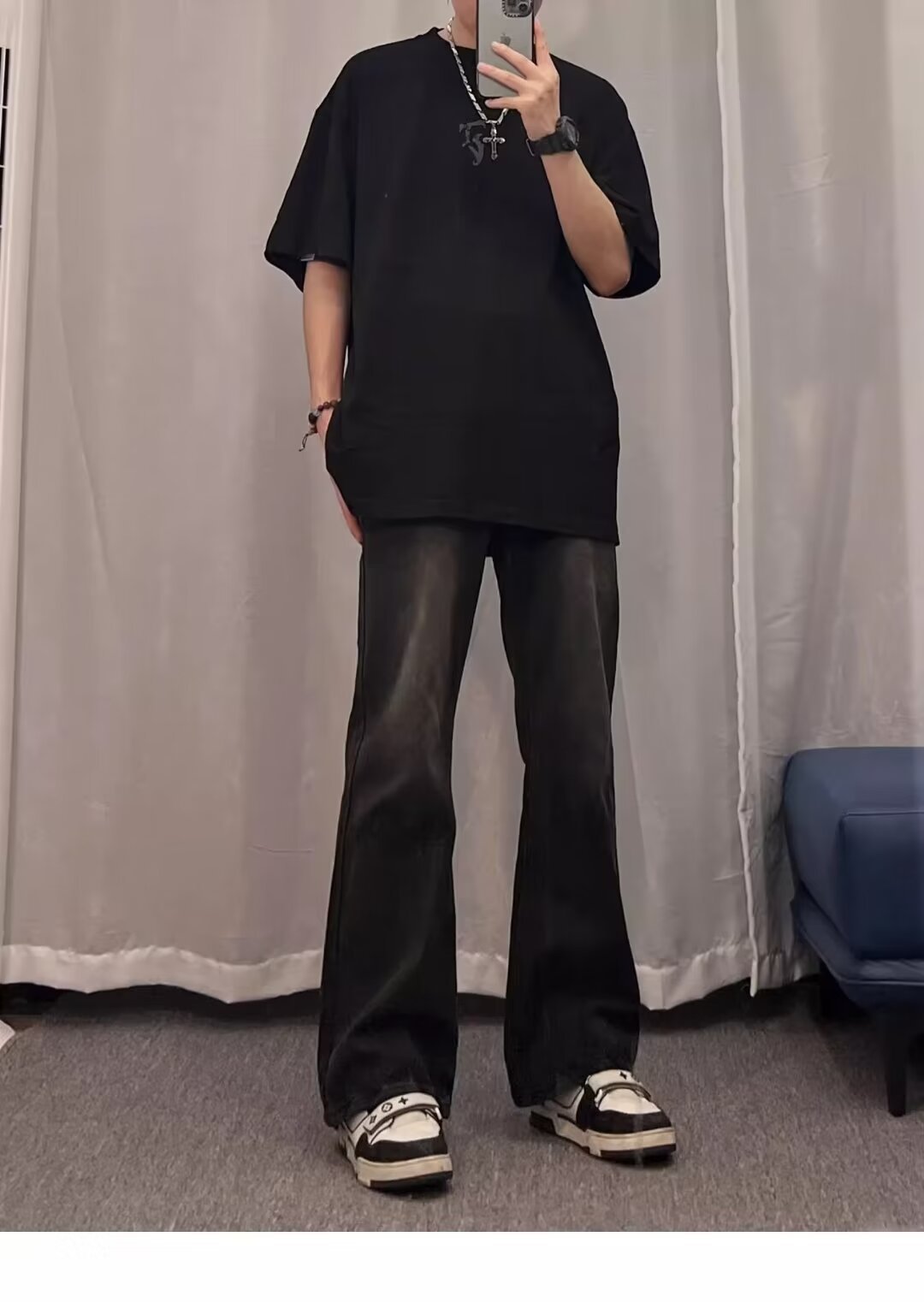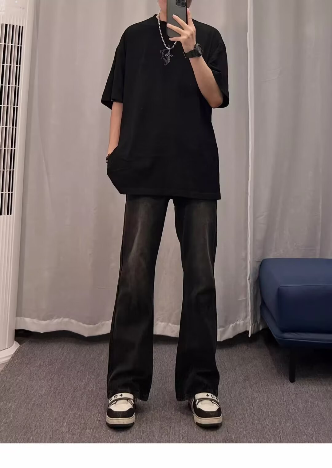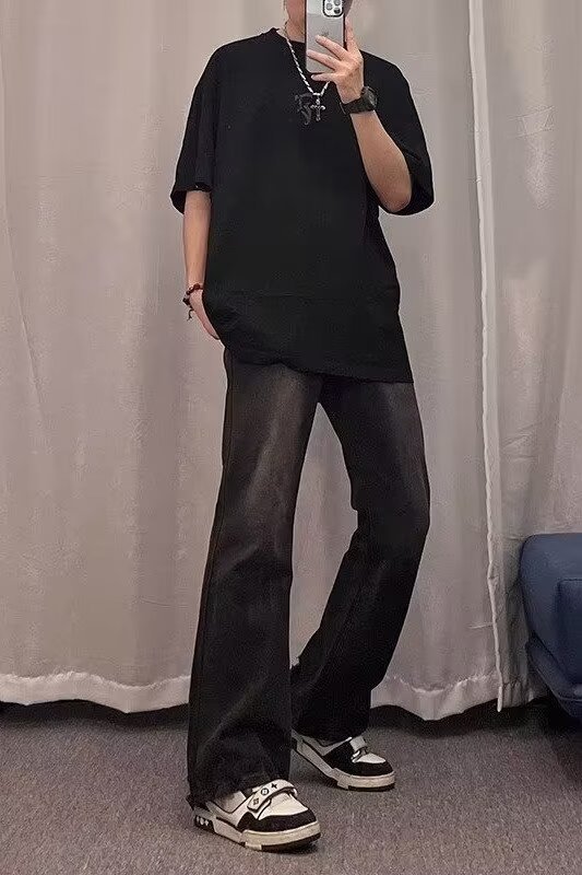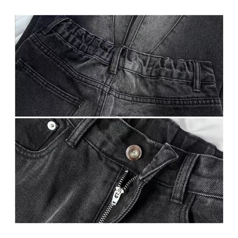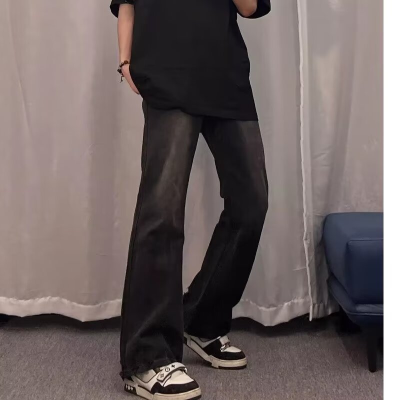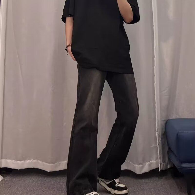 2024 primavera y otoño nuevo estilo americano calle alta suelta recta pantalones largos casuales negros marca de moda jeans para hombres