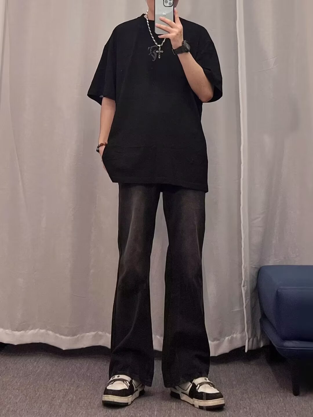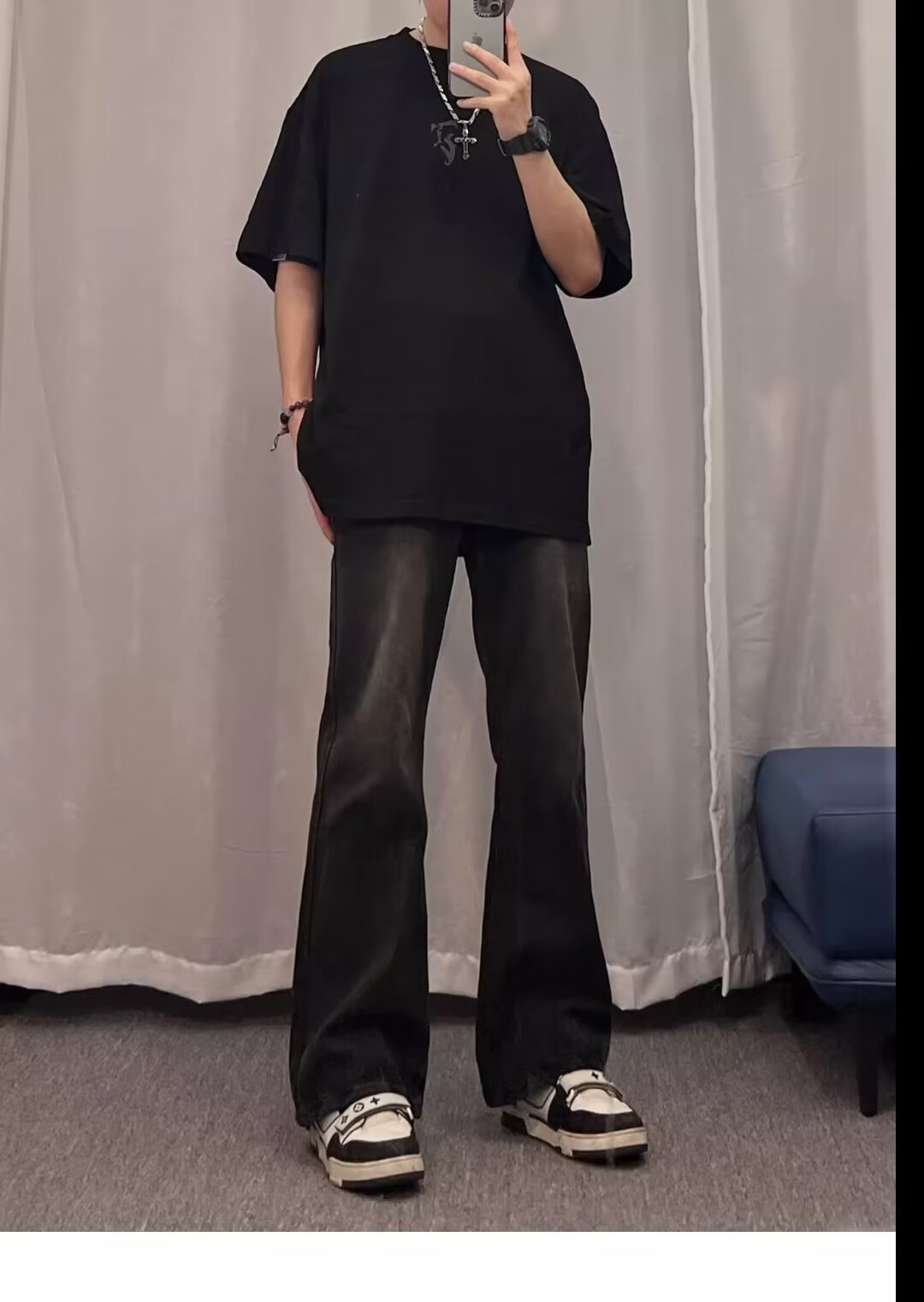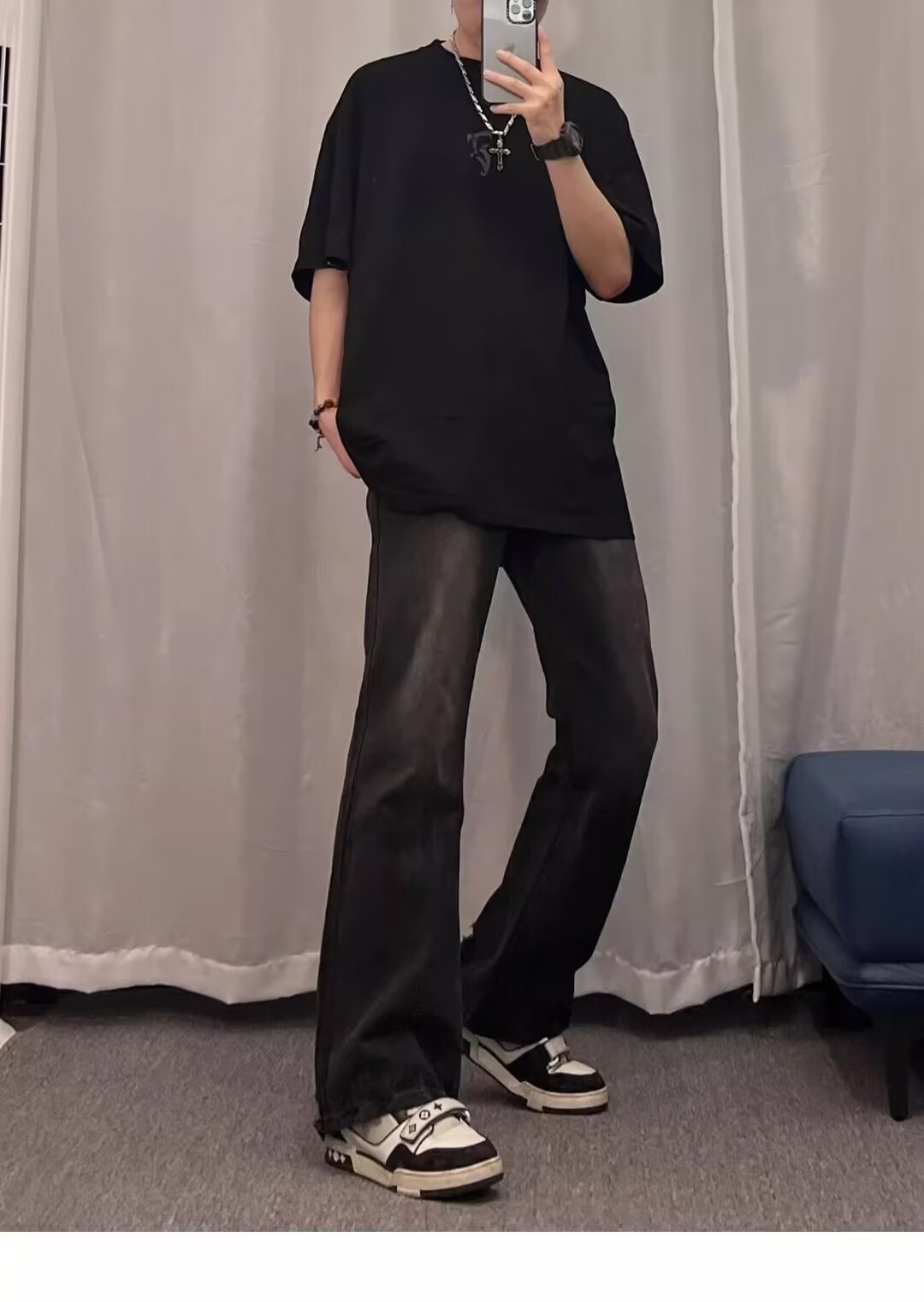 2024 primavera y otoño nuevo estilo americano calle alta suelta recta pantalones largos casuales negros marca de moda jeans para hombres