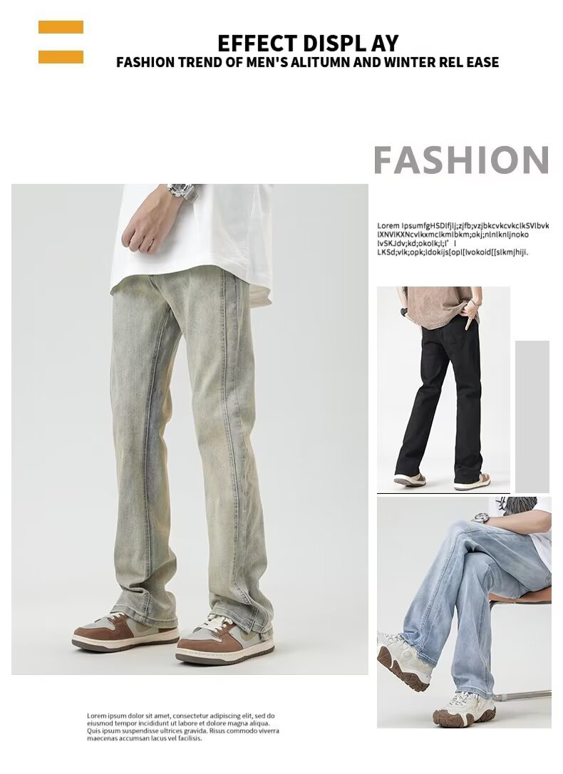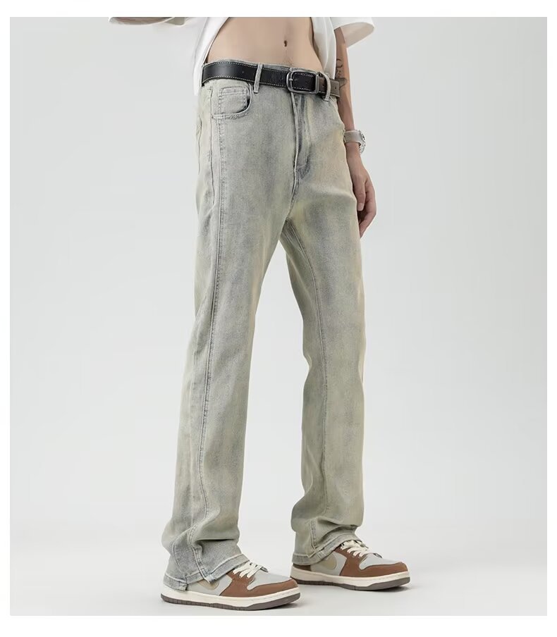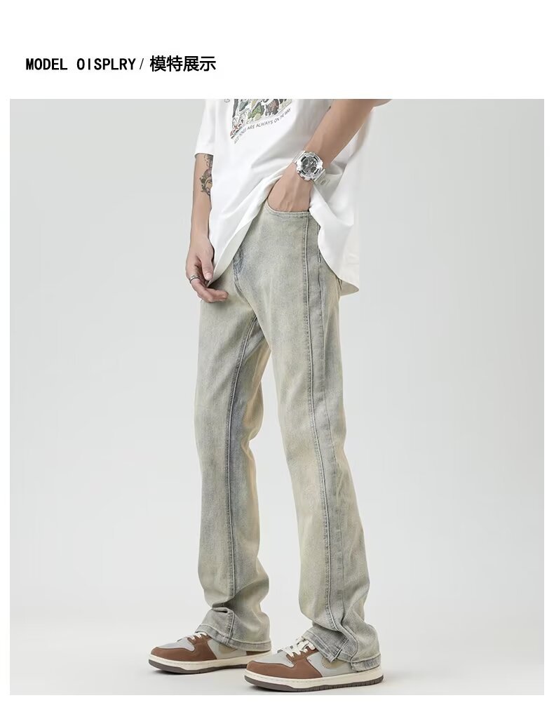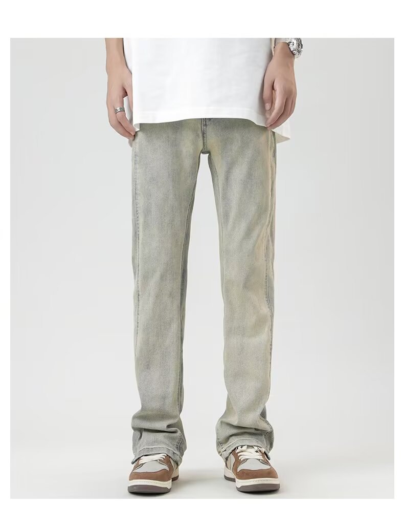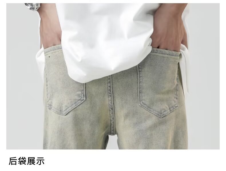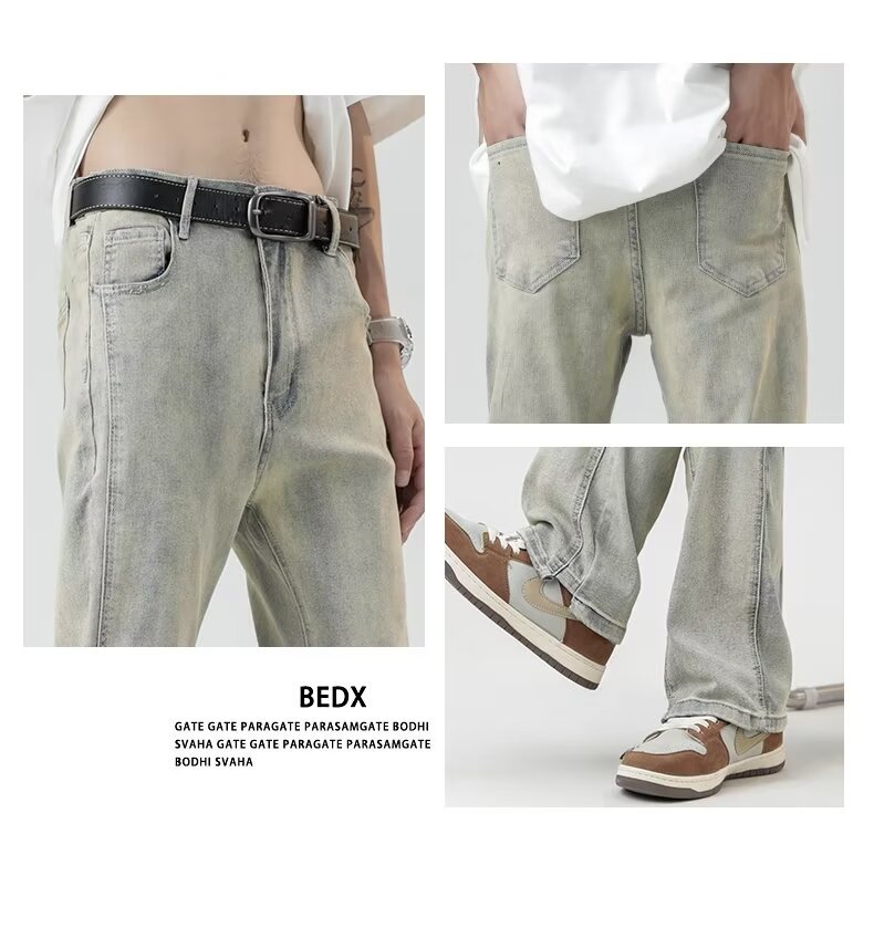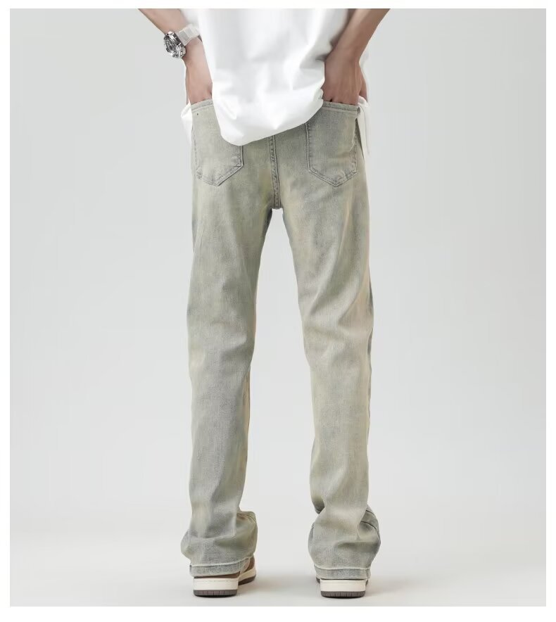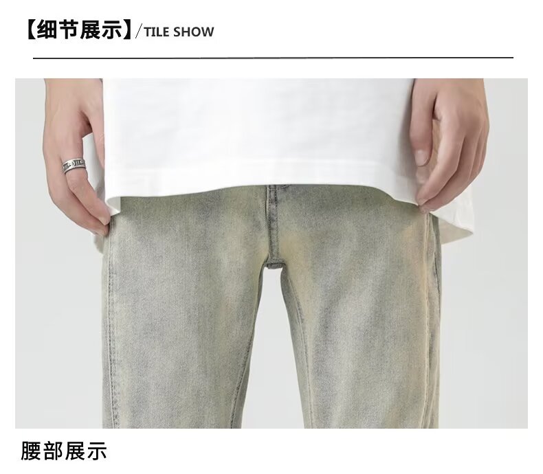 2024 otoño nuevos hombres estilo americano retro lavado de pierna ancha jeans-escalera amarilla-N929-T032-P45