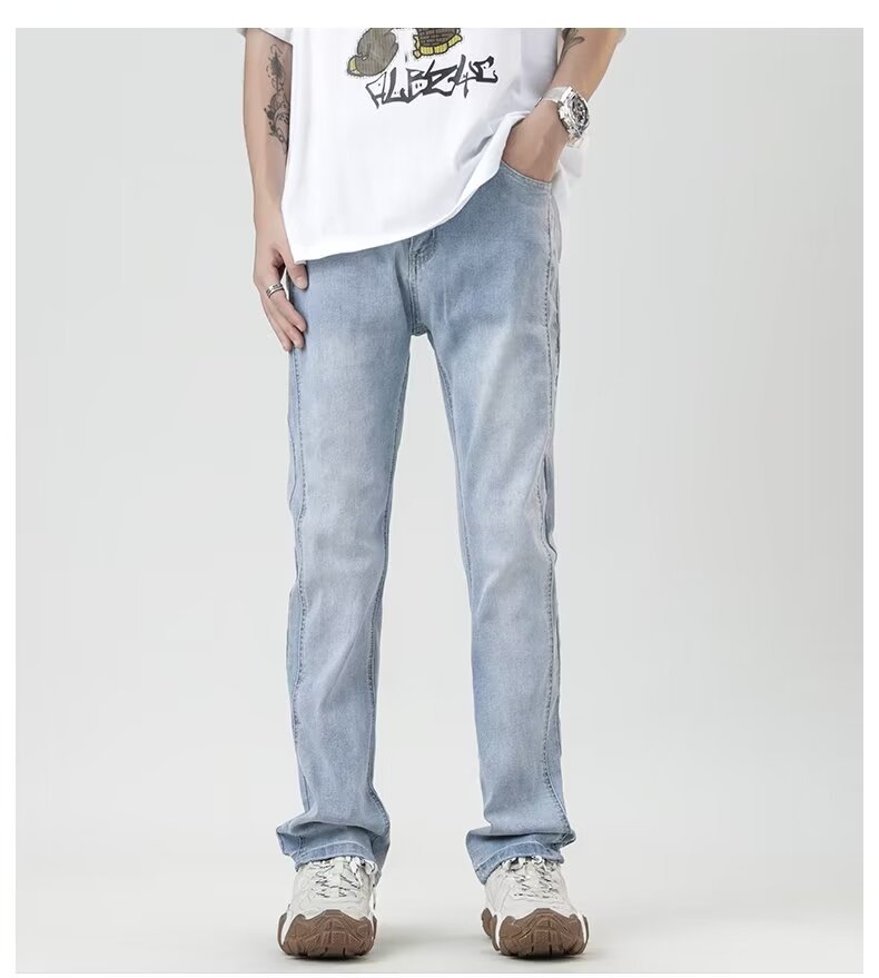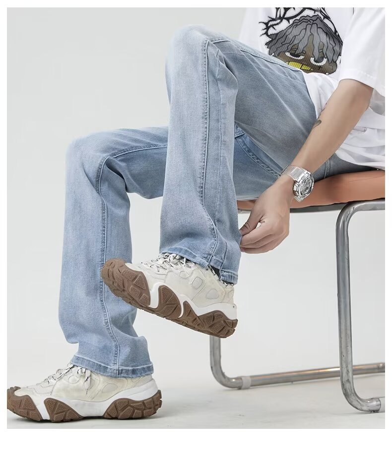 MTLCLOTHES Hombres| 2024 verano nuevo nicho de diseño de flip-flop sensación de jeans rectos sueltos