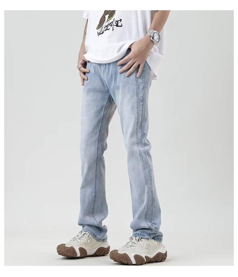 Monos de mezclilla para hombre, monos ins de moda europea y americana, pantalones acampanados laminados de mezclilla de parche elástico explosivo