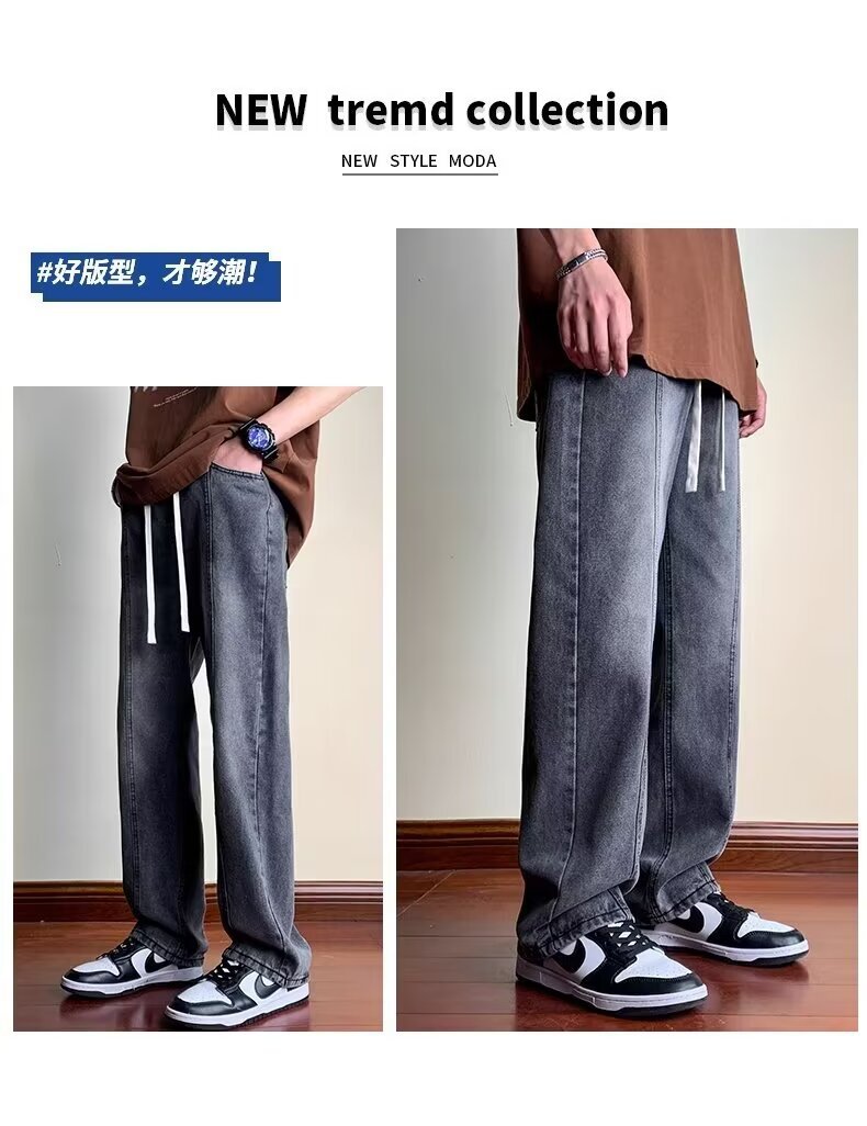 Pantalones vaqueros grises ahumados pantalones de pierna ancha sueltos para hombres primavera nuevo estilo de Hong Kong ins marca de moda Pantalones rectos para hombres