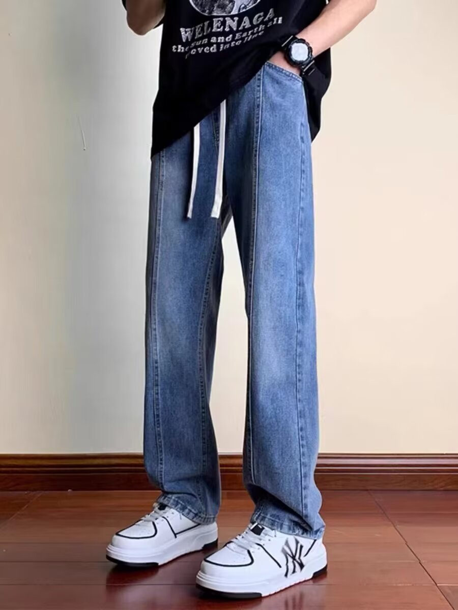 Hanlu Xingangfeng jeans para hombre para hombre 2025 primavera nuevo color sólido lavado recto ins pantalones de tendencia