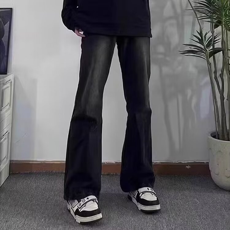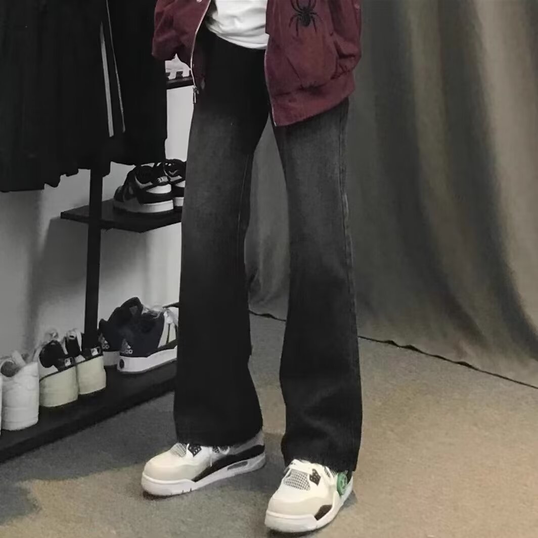 Negro recto 2024 primavera y otoño nuevo estilo americano calle alta suelta pantalones largos casuales marca de moda jeans para hombres