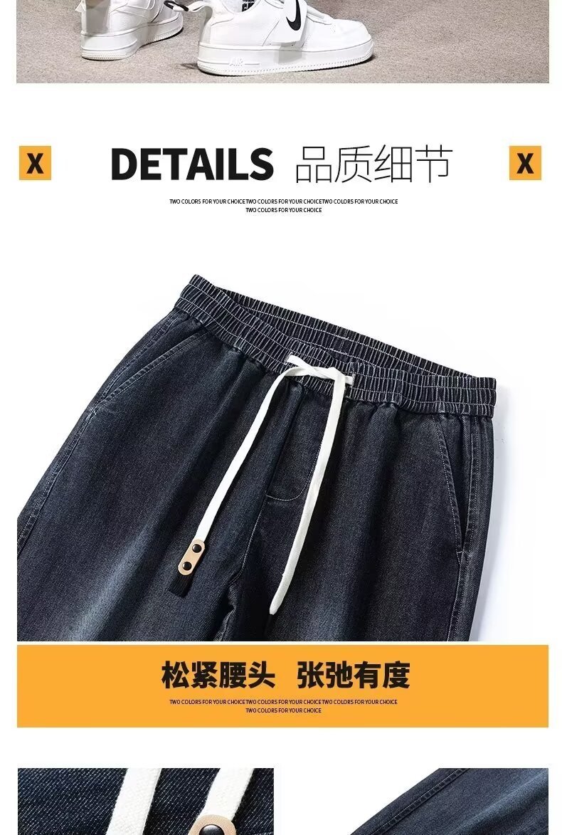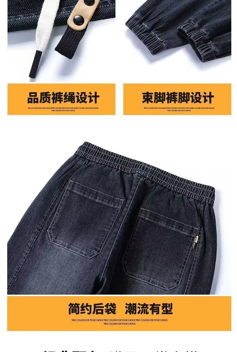 2024 primavera y otoño pantalones vaqueros de cintura elástica todo fósforo para hombres, pantalones de pierna ancha rectos sueltos para adolescentes de la calle principal