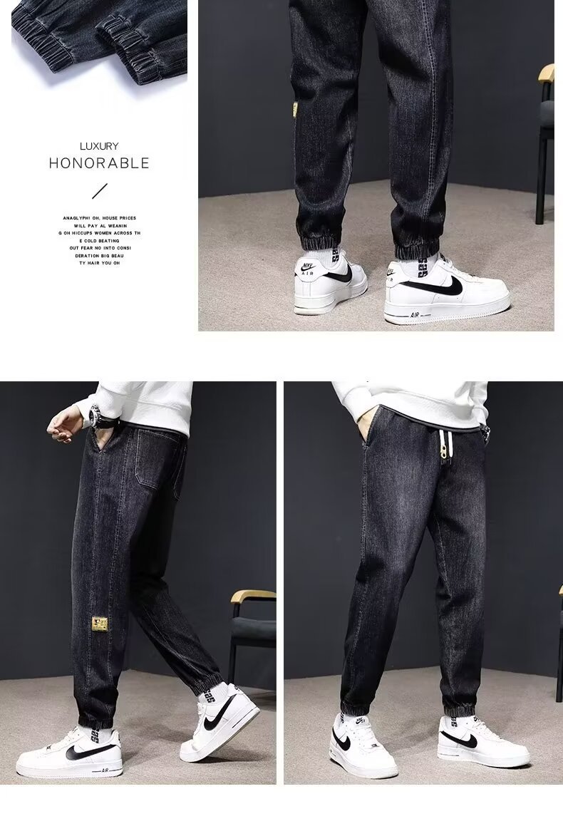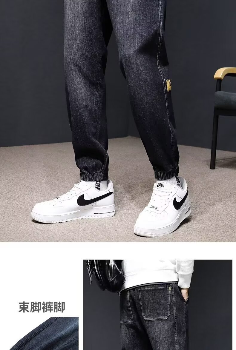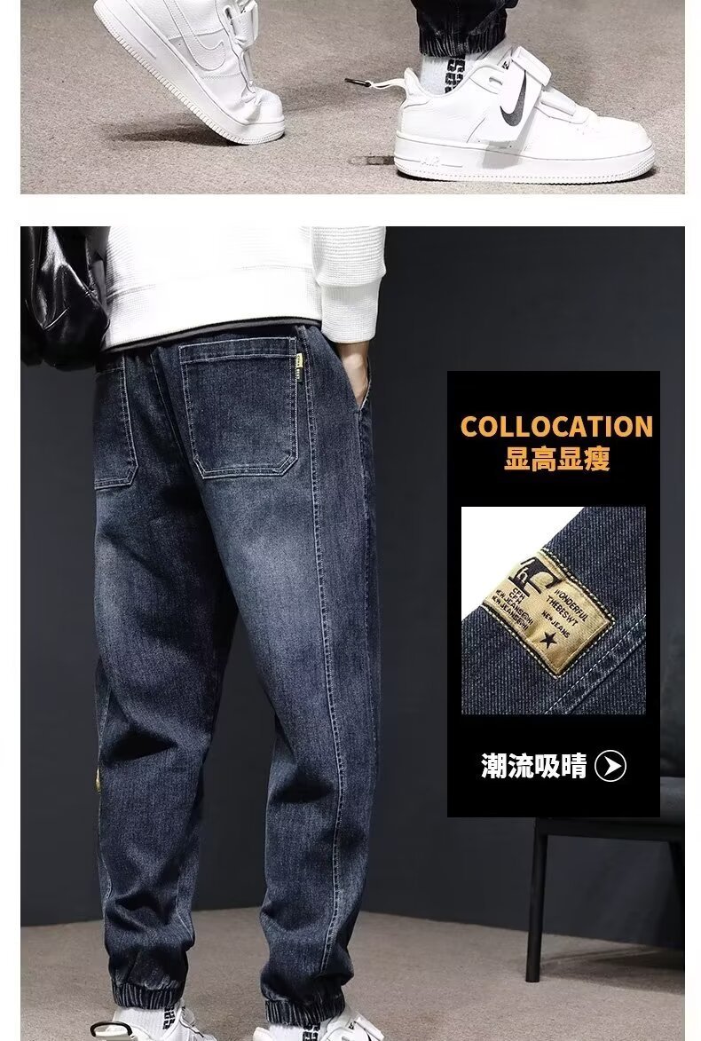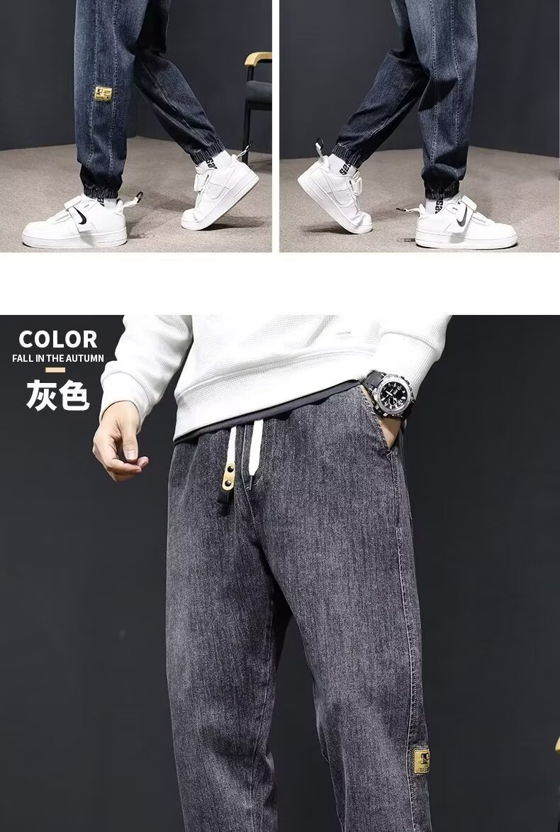 Otoño e Invierno de gama alta suelta estiramiento skinny jeans hombres de moda marca elástico cinturón de hierro-libre casual todo partido harén Pantalones
