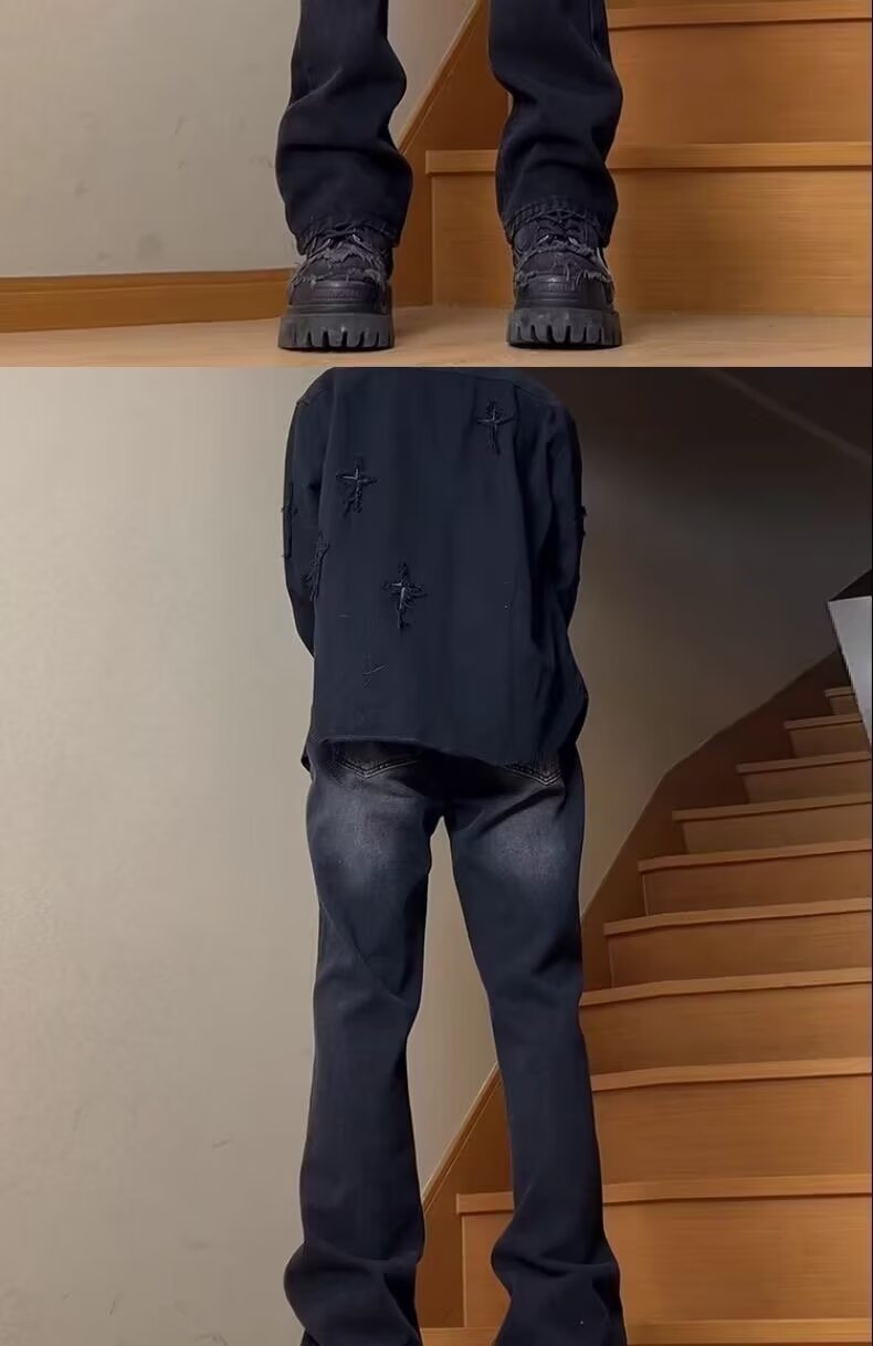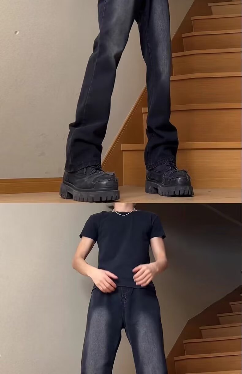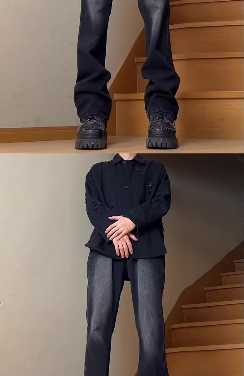 Moda americana calle todo fósforo guapos jeans hombres sueltos rectos casuales hollín pantalones ins tendencia mezclilla