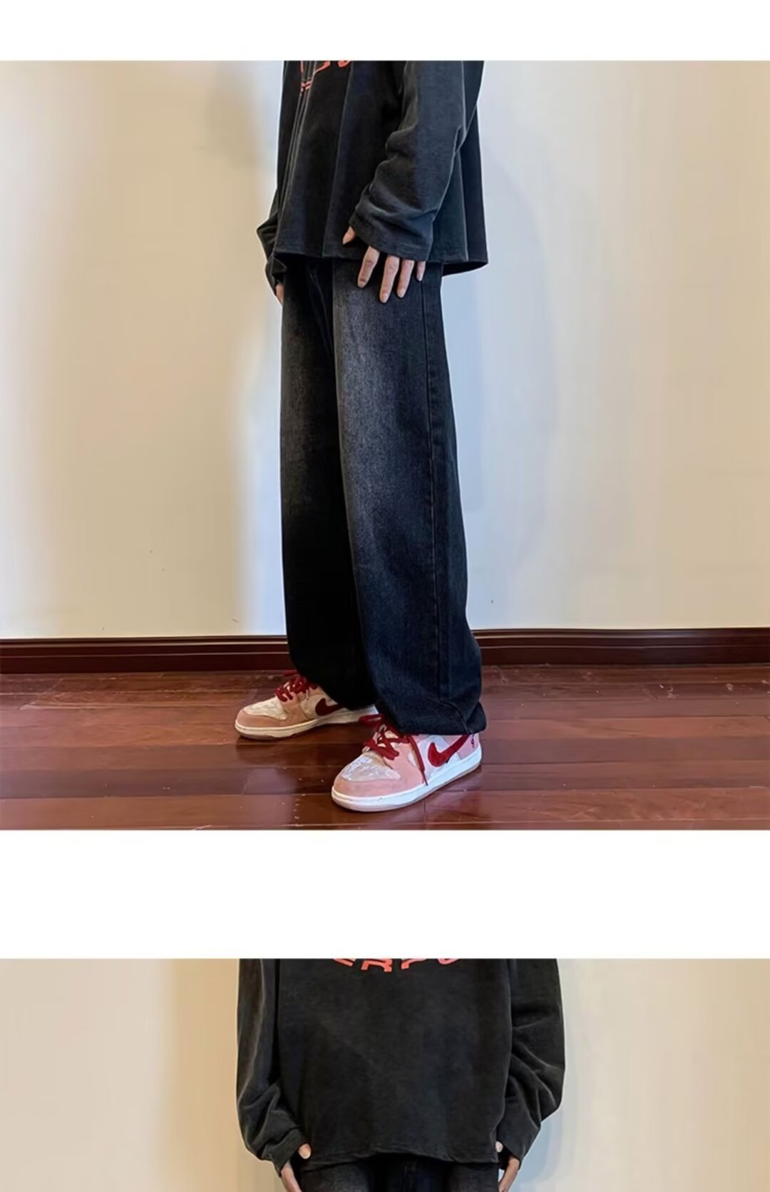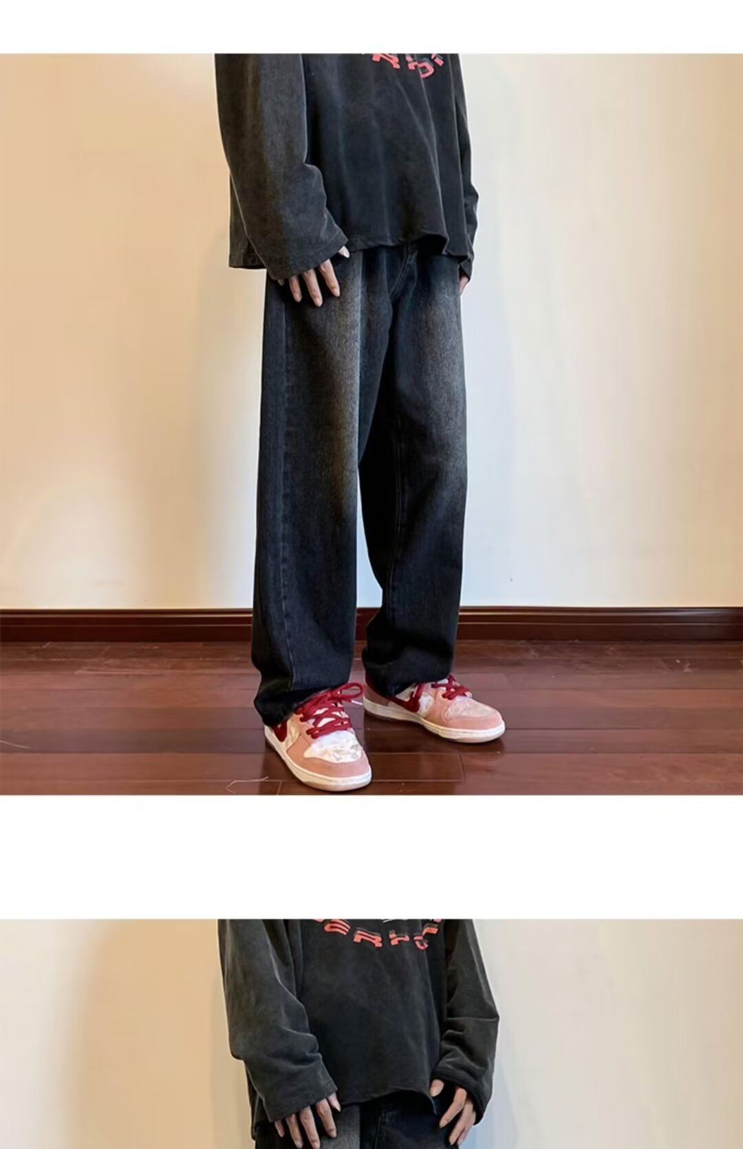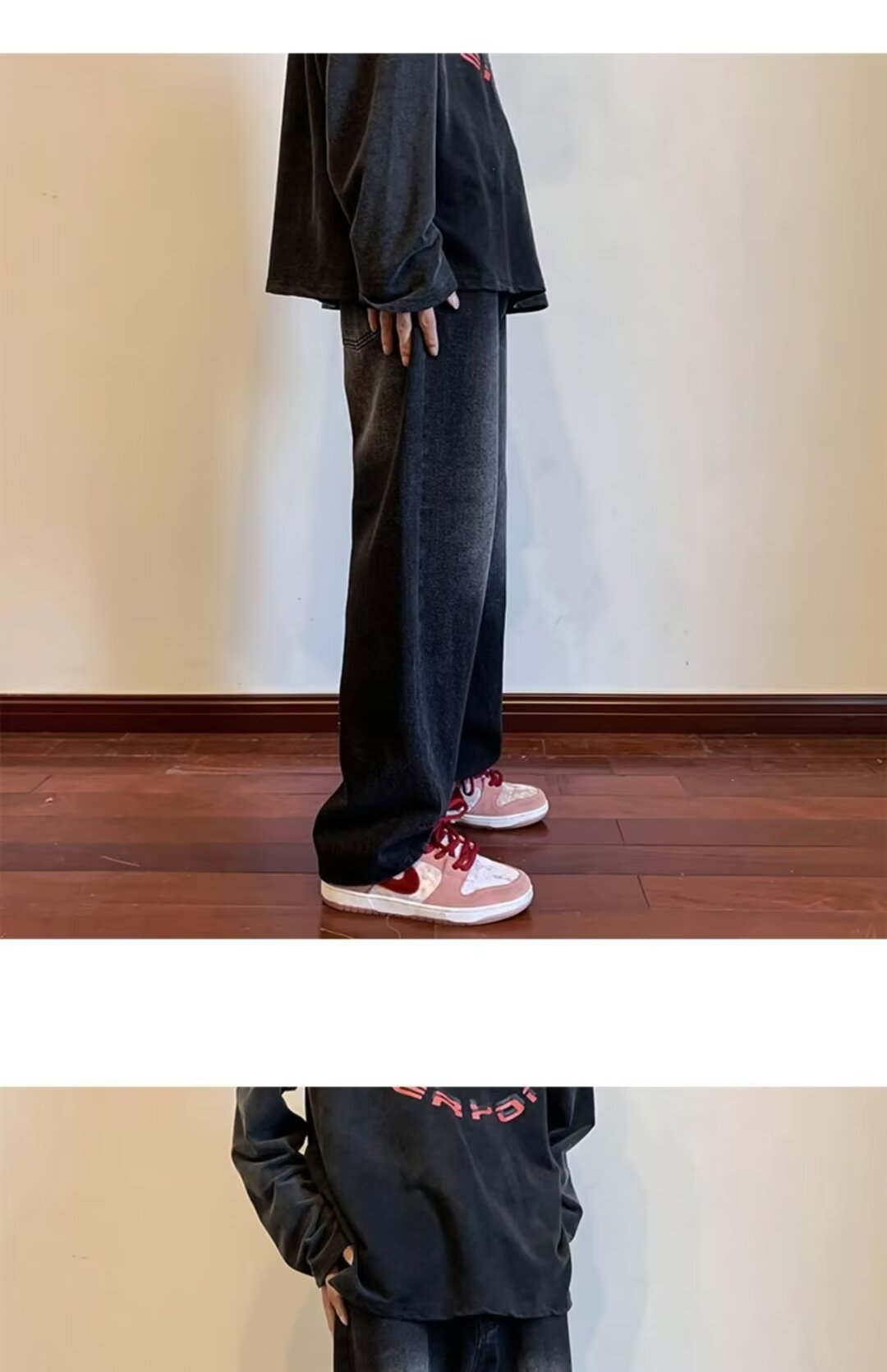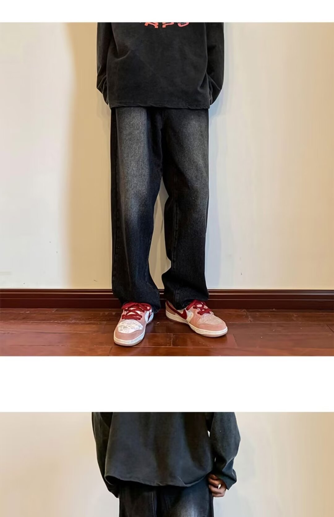 Nirben Denim | pantalones vaqueros de pierna ancha drapeado recto suelto de los hombres adelgazamiento papá fregona pantalones moda