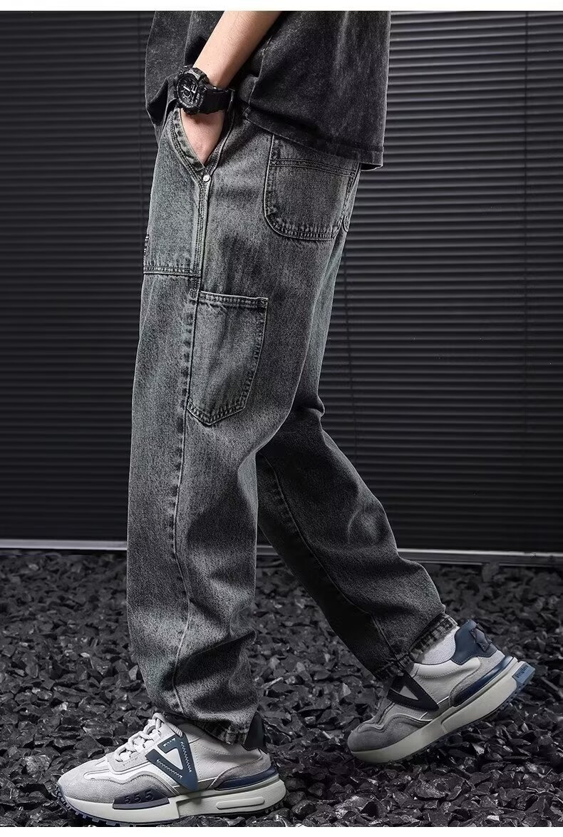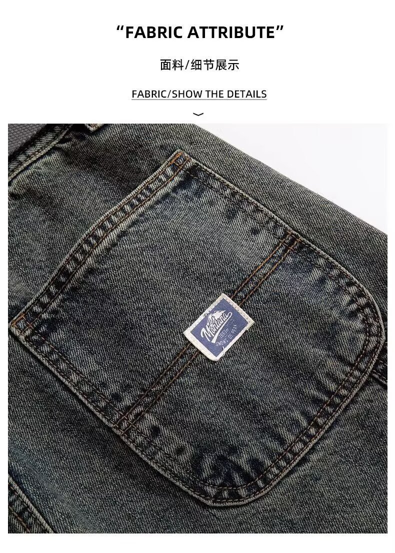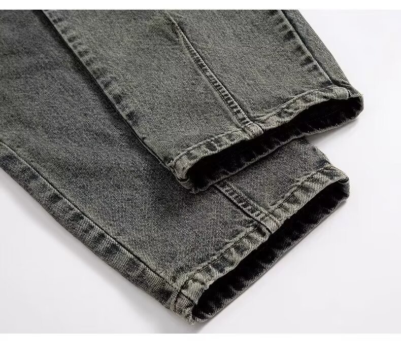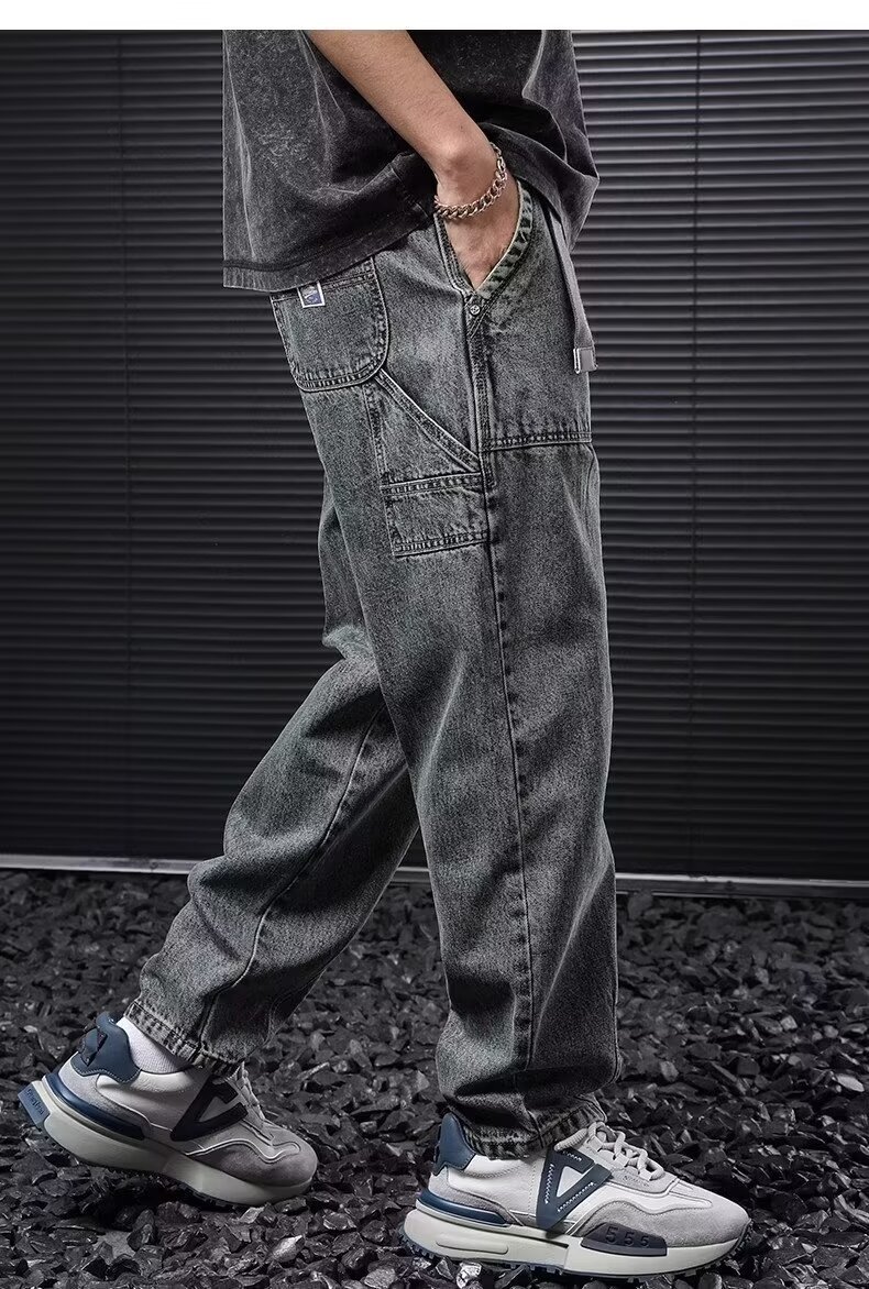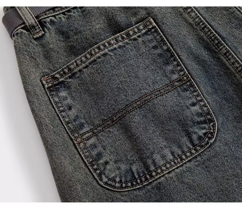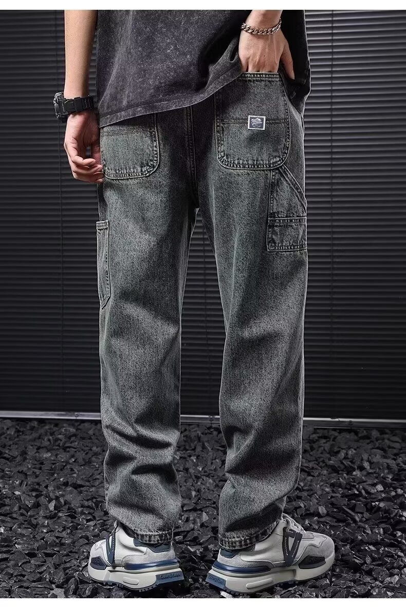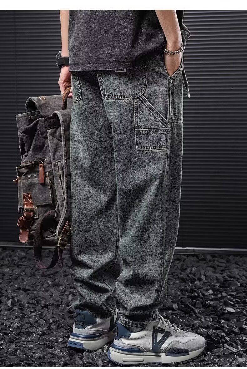 Jeans anchos de mezclilla para hombre, estilo vintage americano lavado, corte recto y suelto
