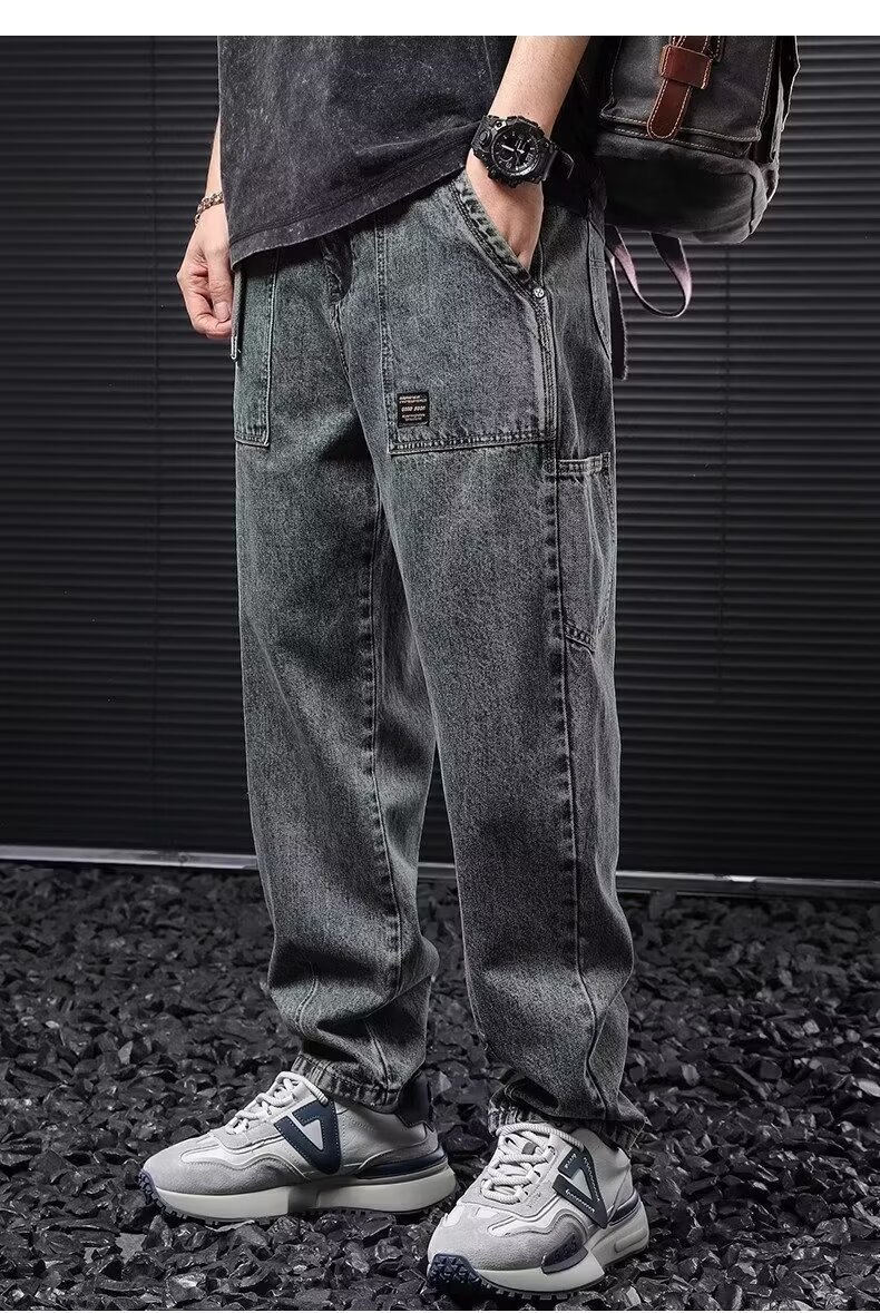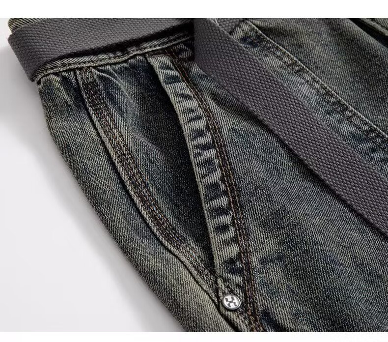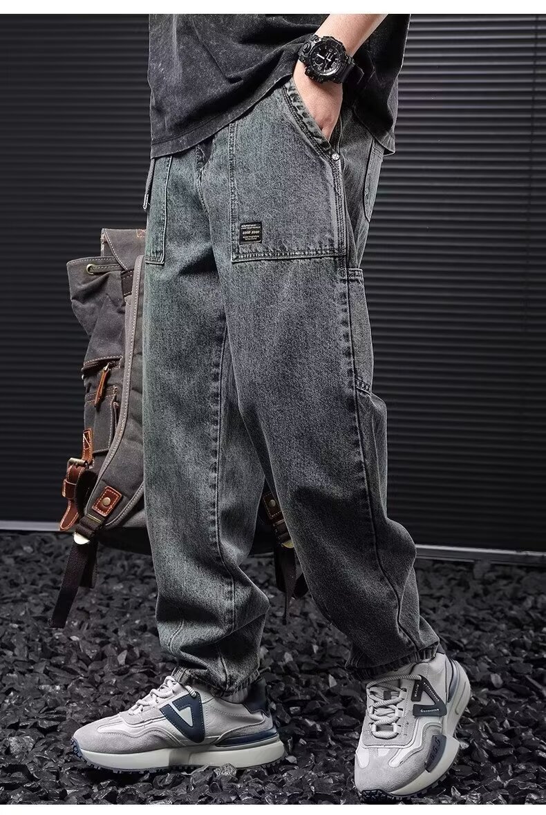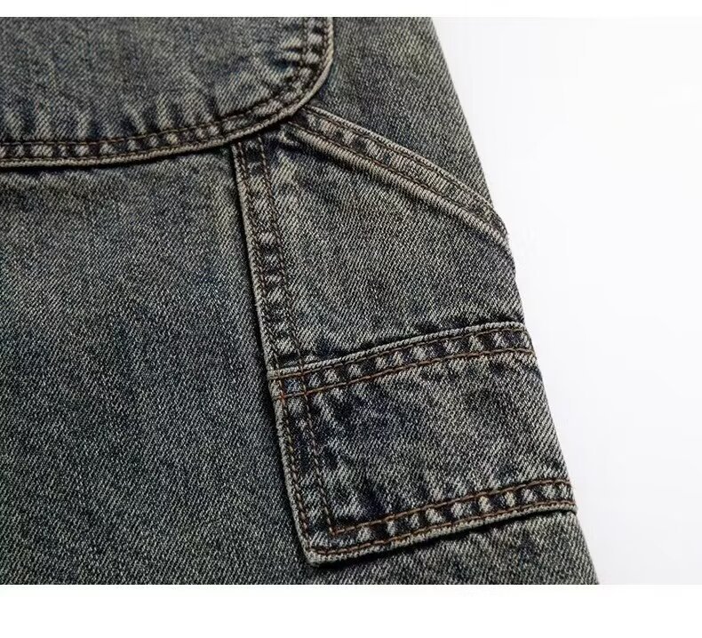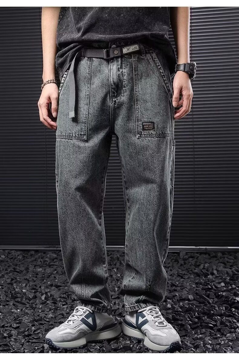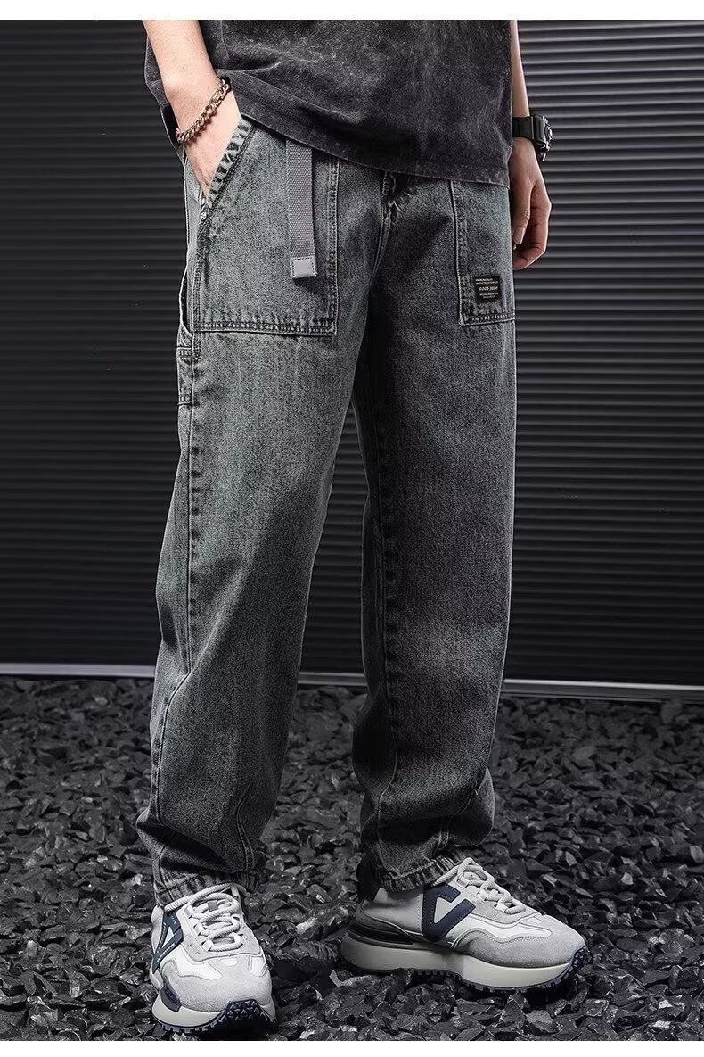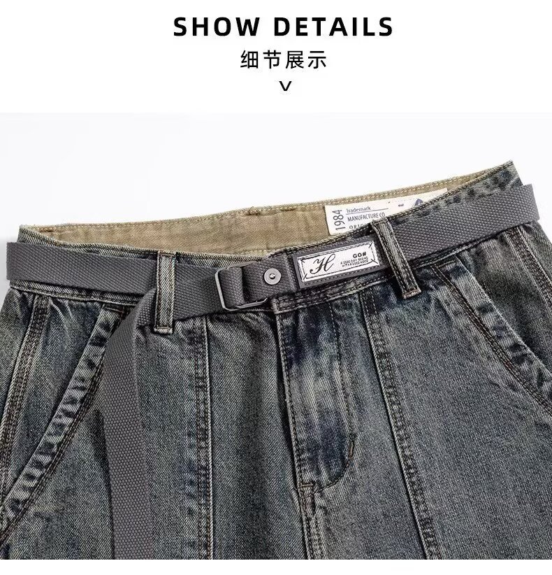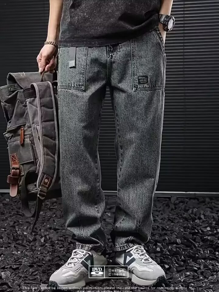 Jeans anchos de mezclilla para hombre, estilo vintage americano lavado, corte recto y suelto