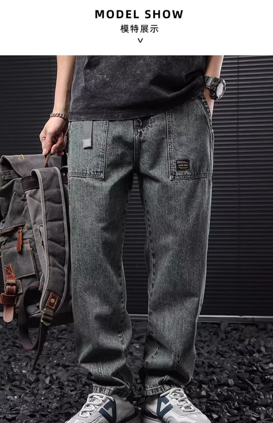 Ropa para hombre MTLCLOTHES | Jeans casuales holgados de pierna ancha y larga hasta el suelo, estilo americano, sencillos y limpios, de tendencia.