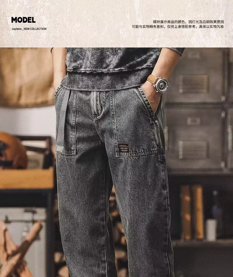 MTLCLOTHES para hombre | Cuatro estaciones nuevos productos versión coreana de jeans lavados rectos sueltos ins tendencia
