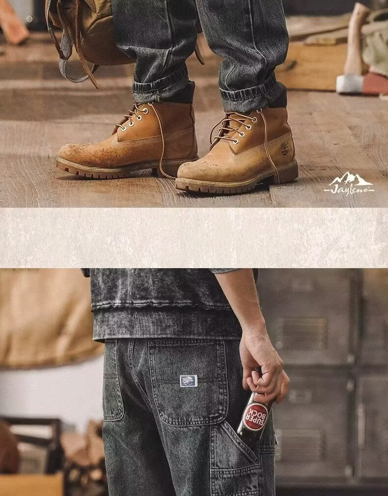 UNF verano pesado lavado, desgastado y desgastado, pantalones de tala, jeans rectos de algodón callejero americano, hombres y mujeres