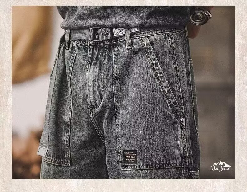 Verano Delgado estiramiento multi-Bolsillo ropa de trabajo recortada Pantalones slim fit Denim shorts recortados pantalones casuales jeans hombres