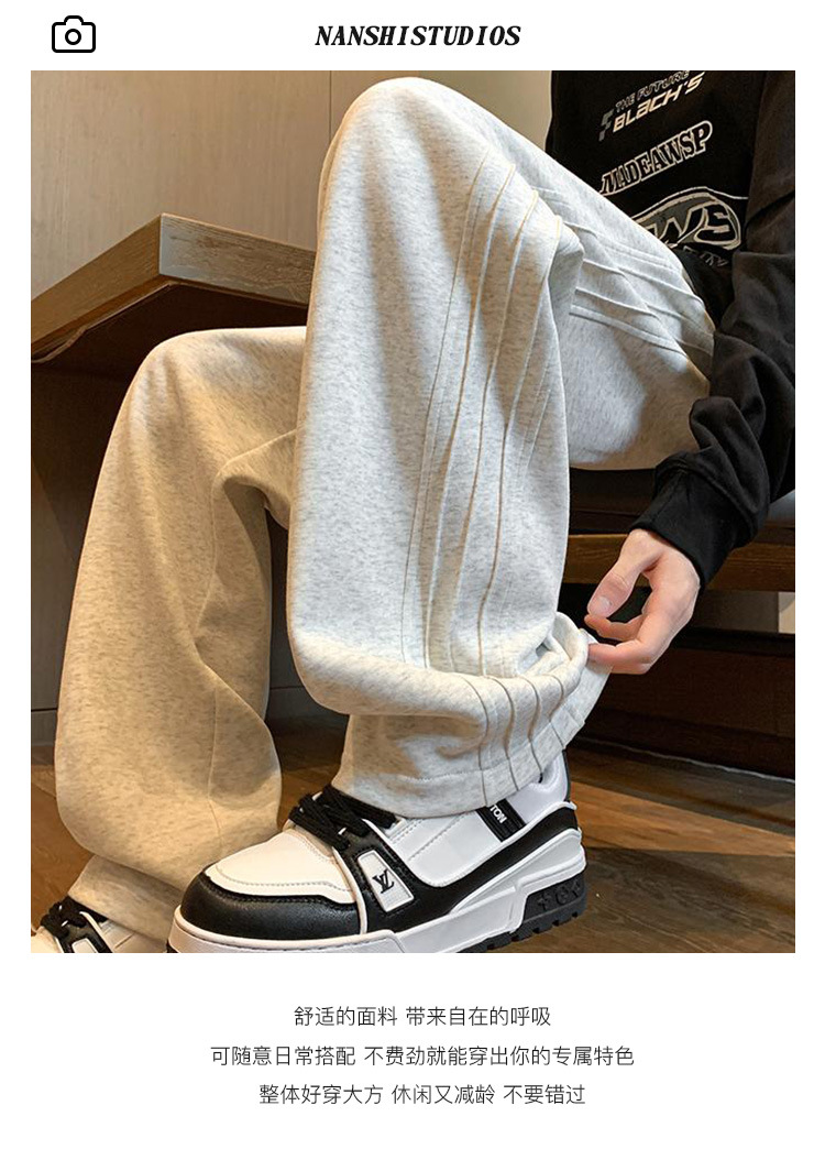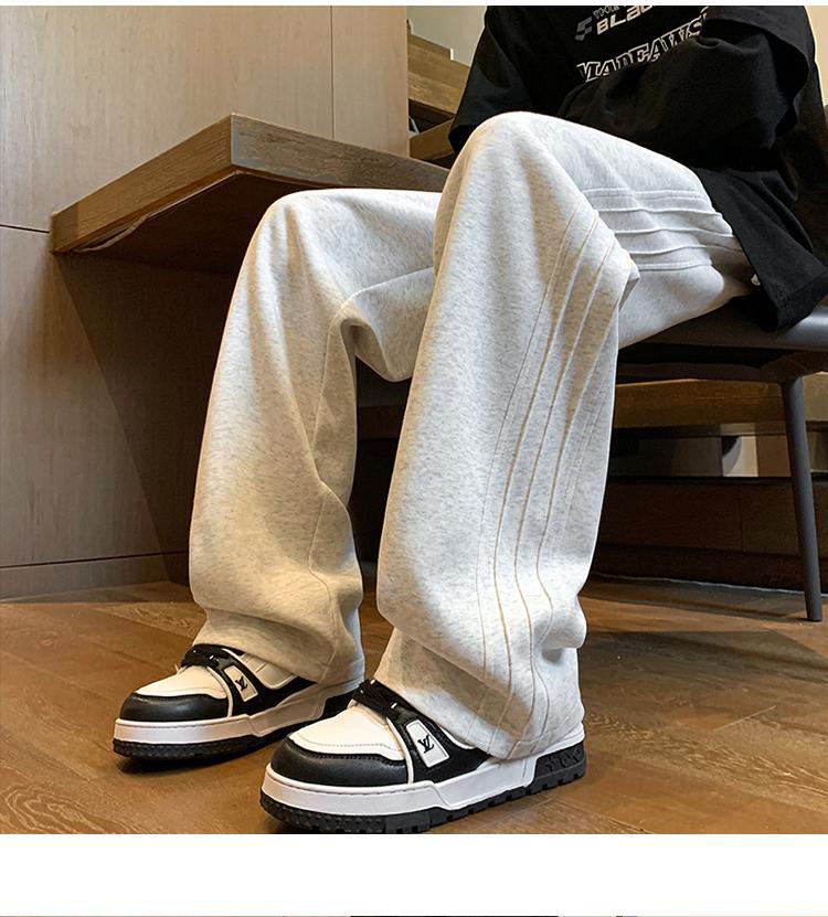 Tendencia de moda 2024 pantalones casuales pesados primavera y otoño para hombres pantalones largos deportivos de pierna ancha rectos retro estadounidenses