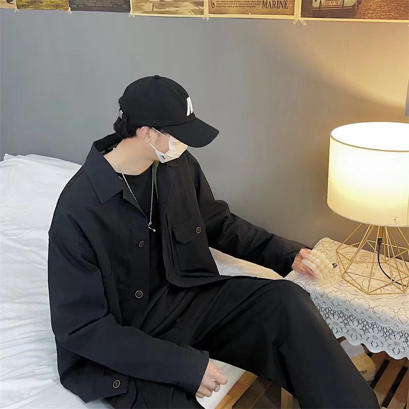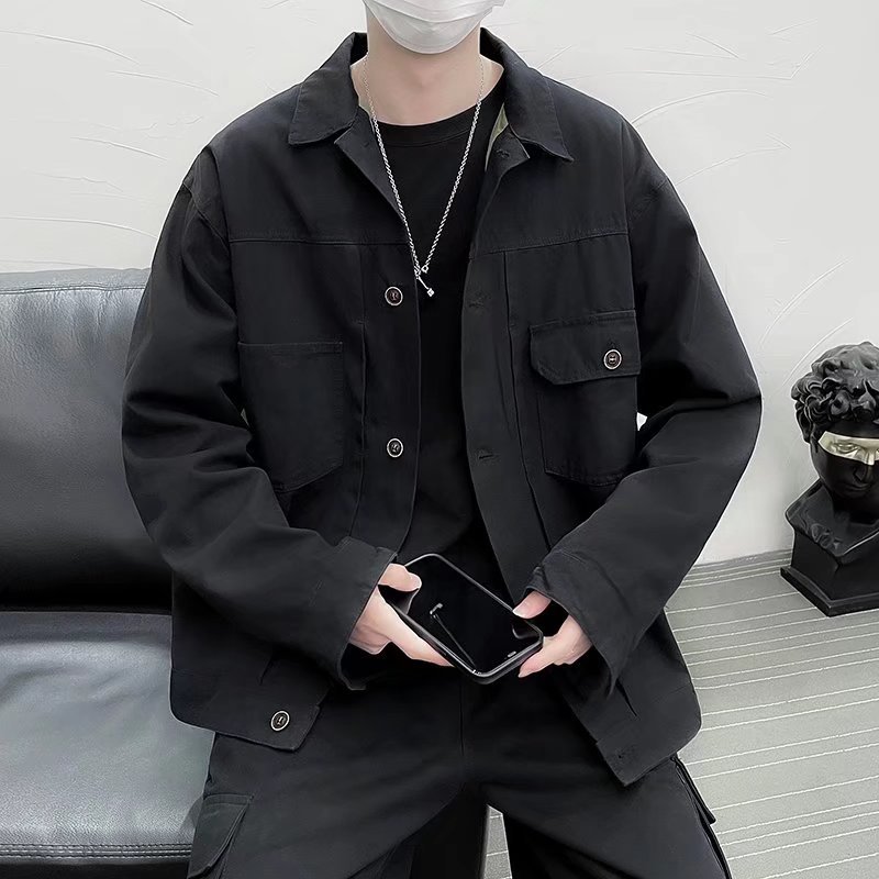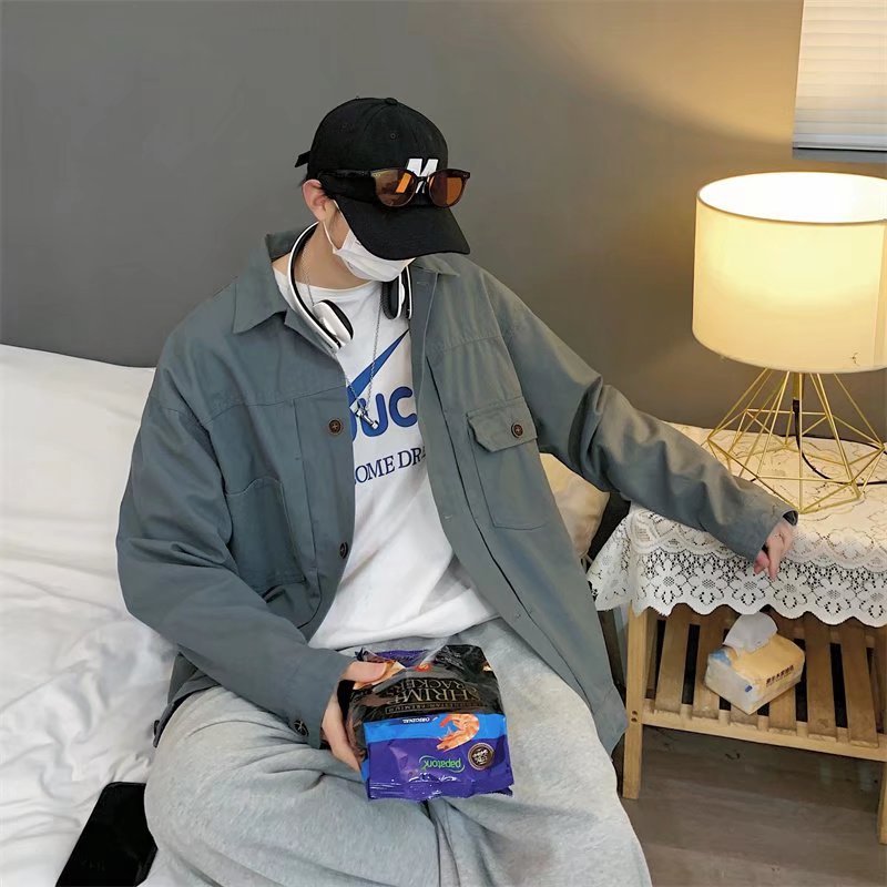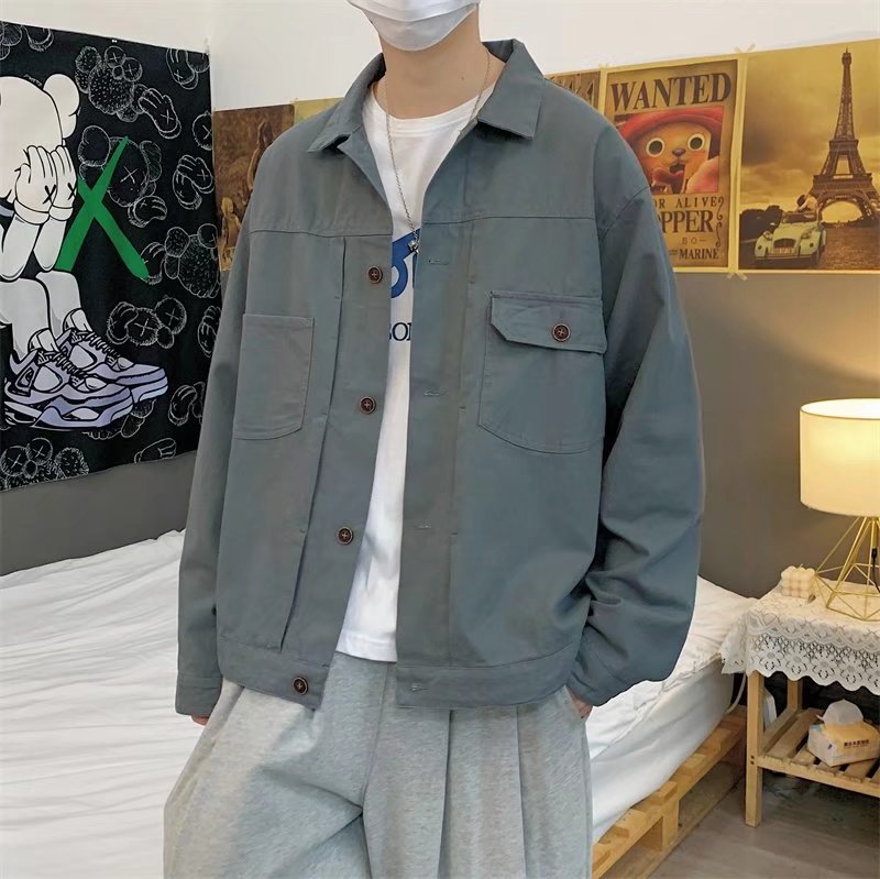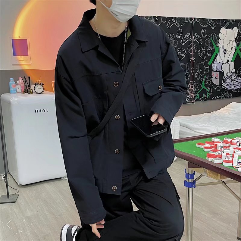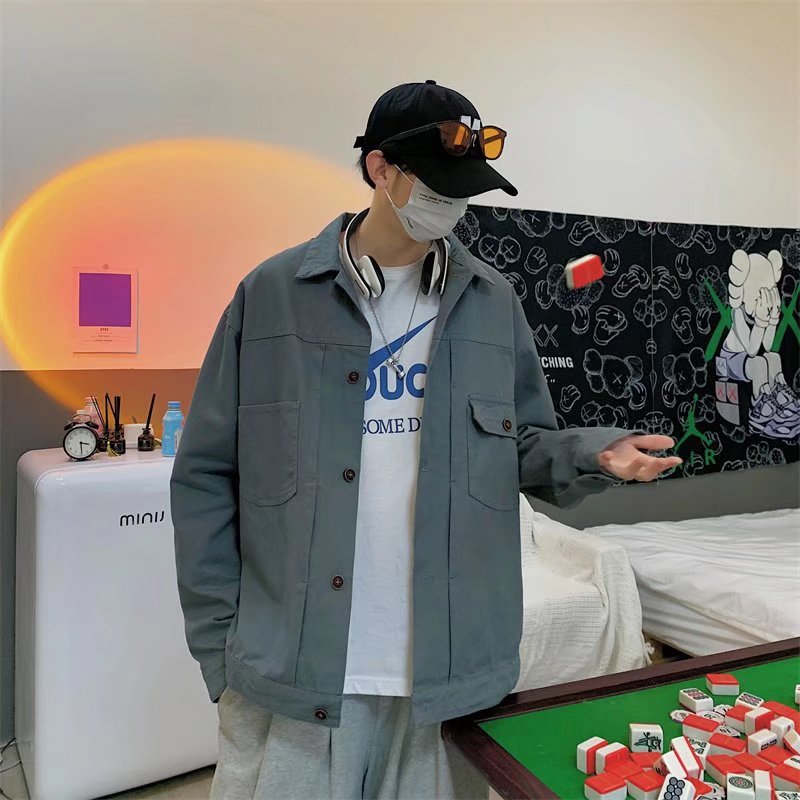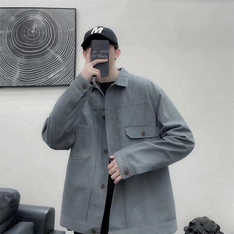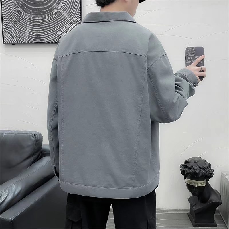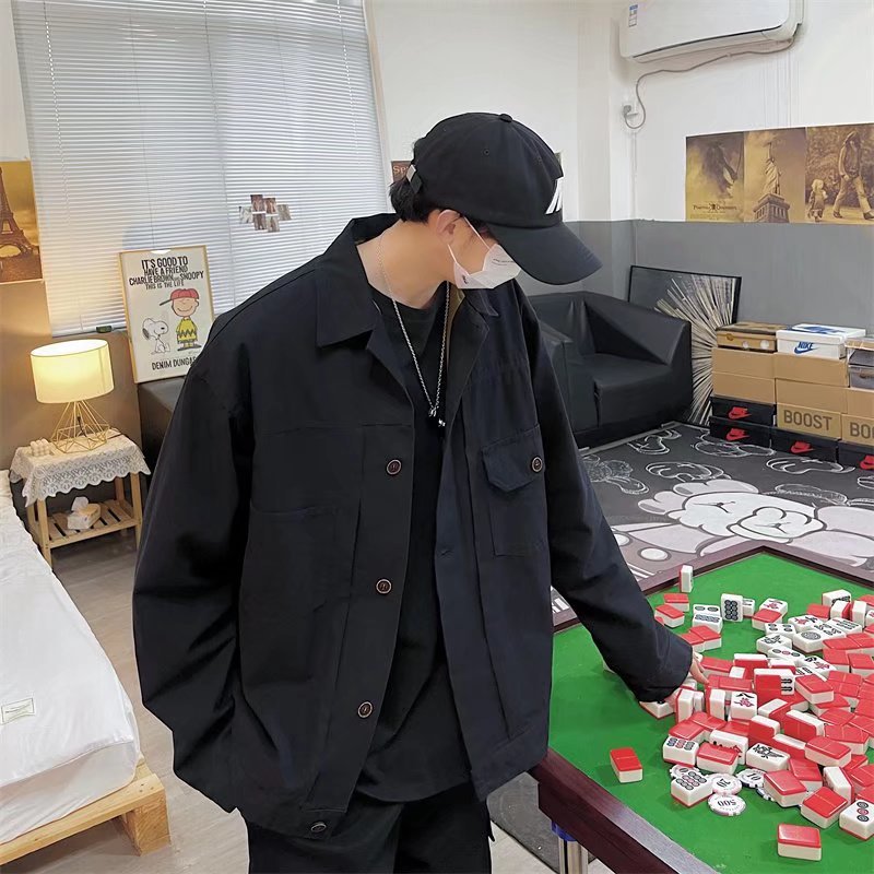 Chaqueta retro simple para hombre, color sólido casual japonés, chaqueta de pareja de manga larga suelta y versátil, ropa interior de moda