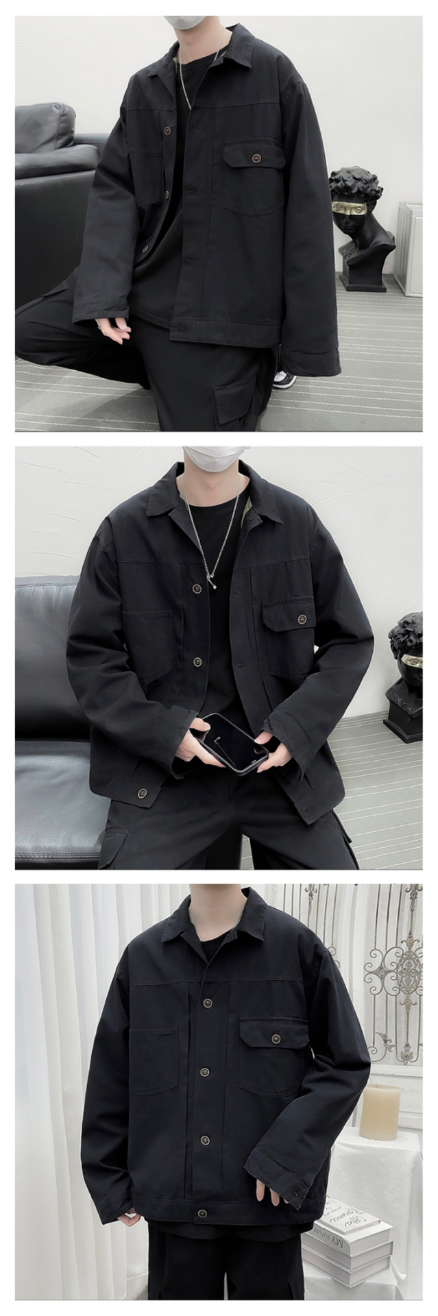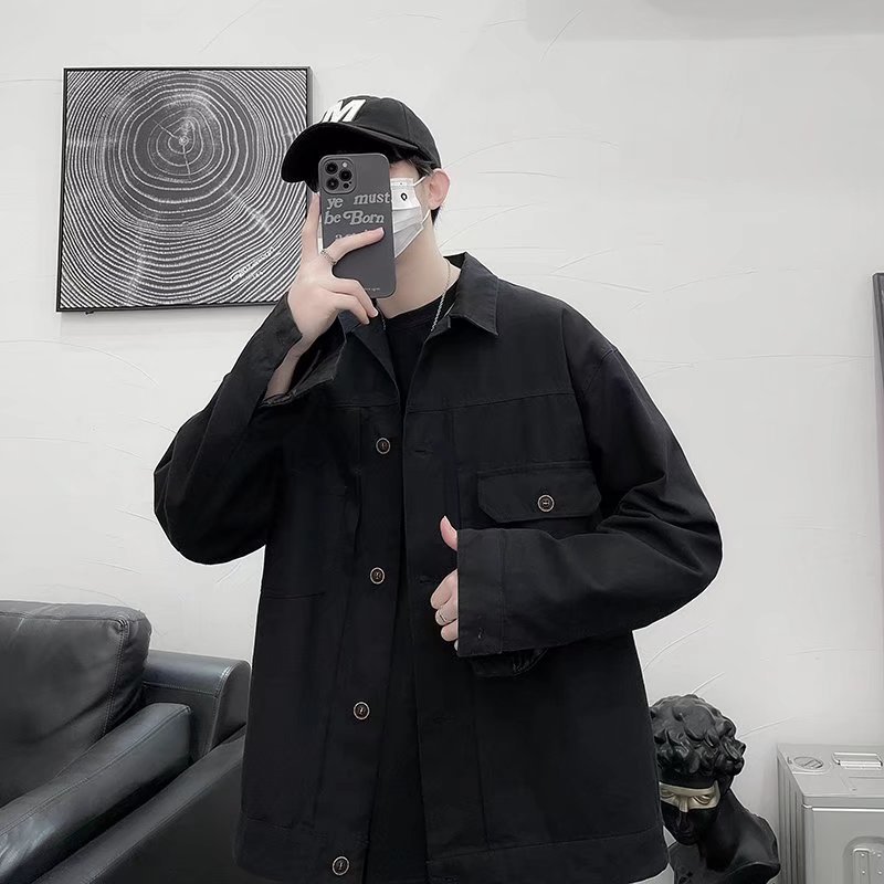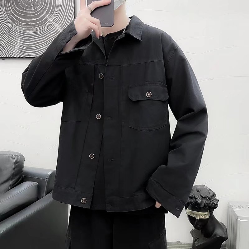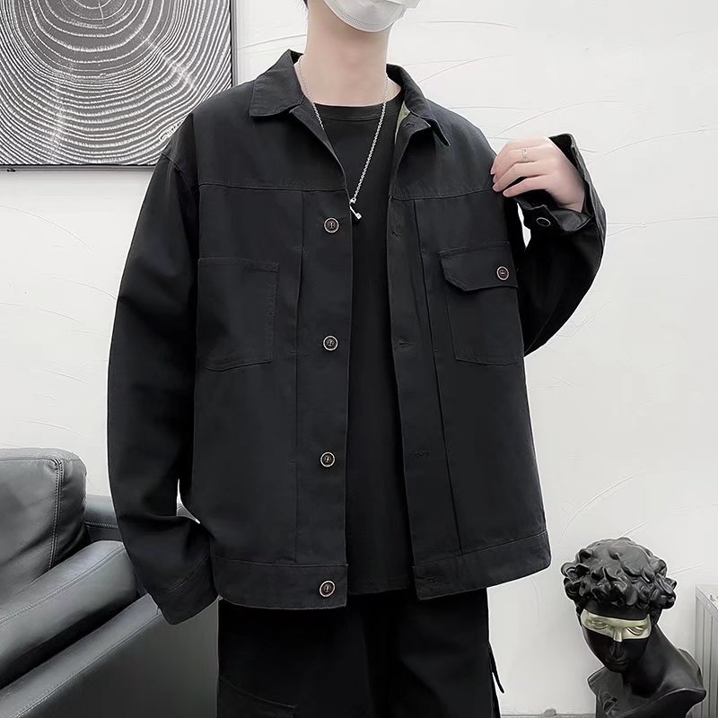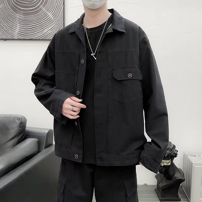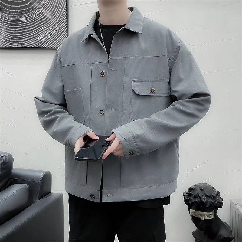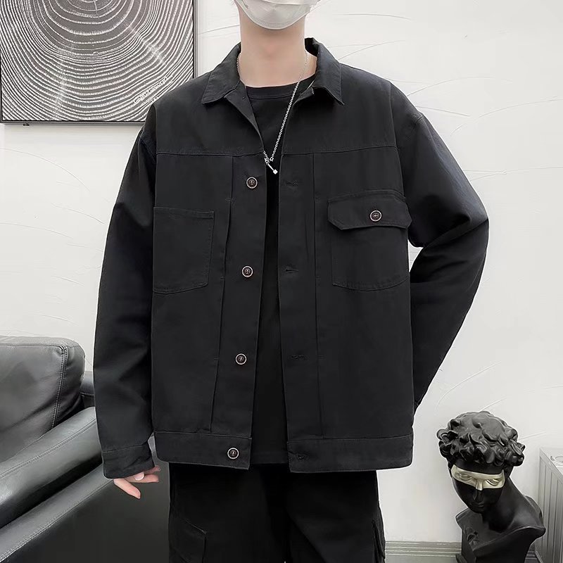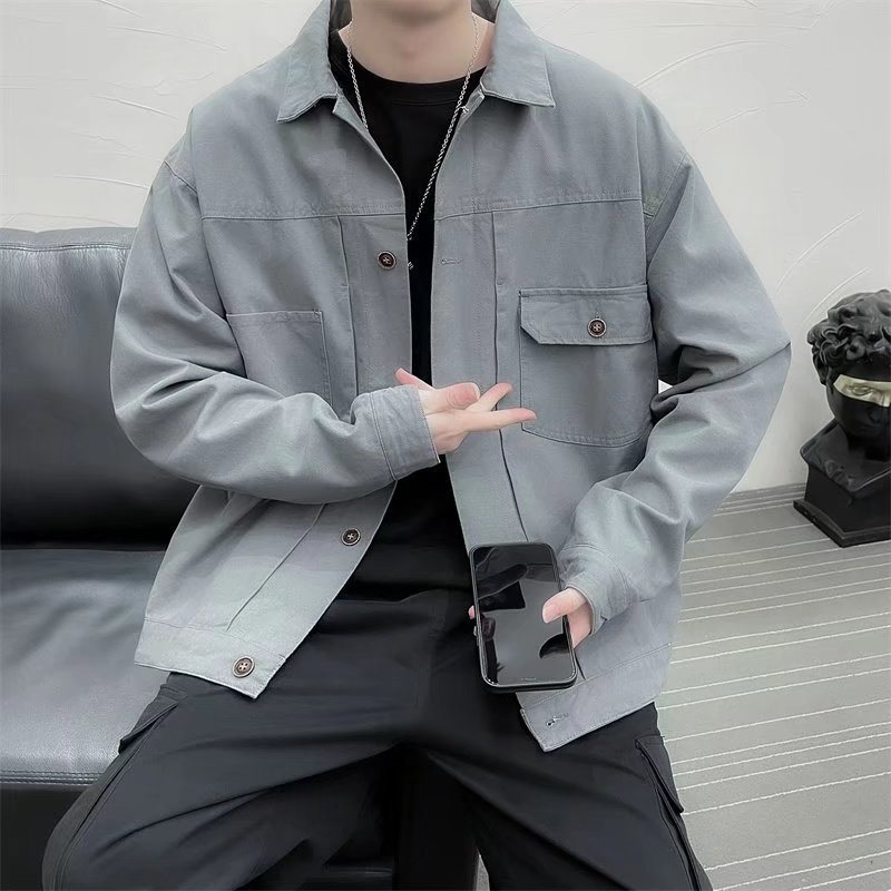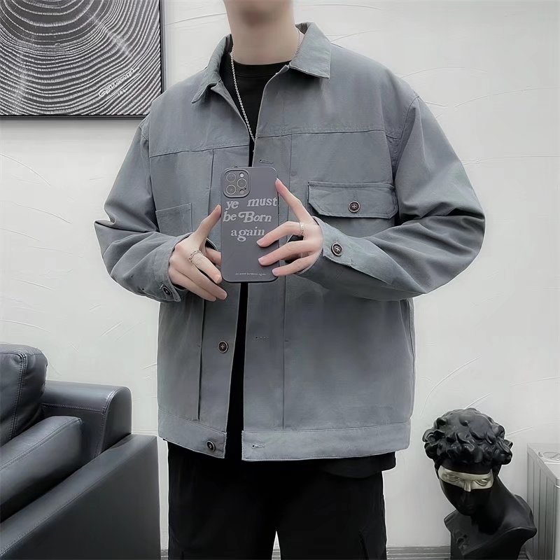 Chaqueta retro simple para hombre, color sólido casual japonés, chaqueta de pareja de manga larga suelta y versátil, ropa interior de moda