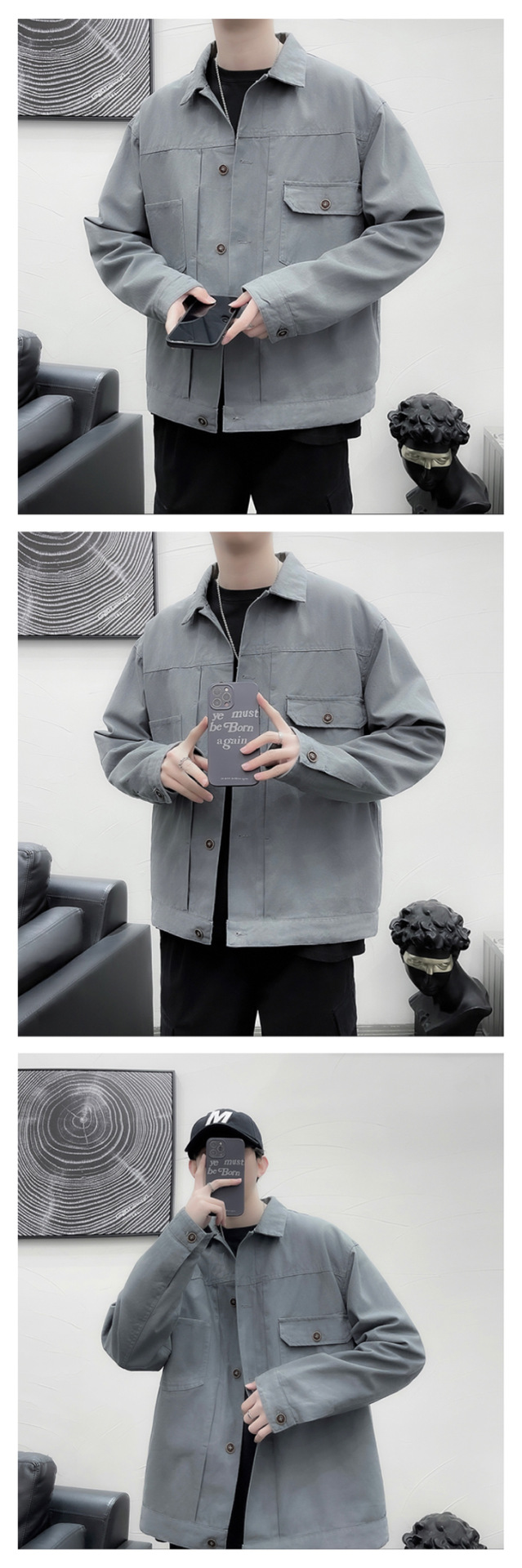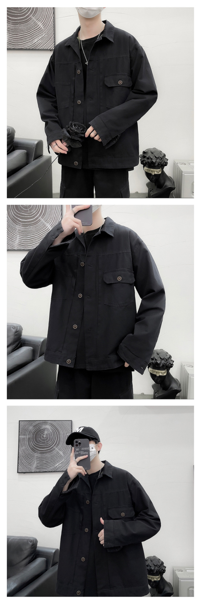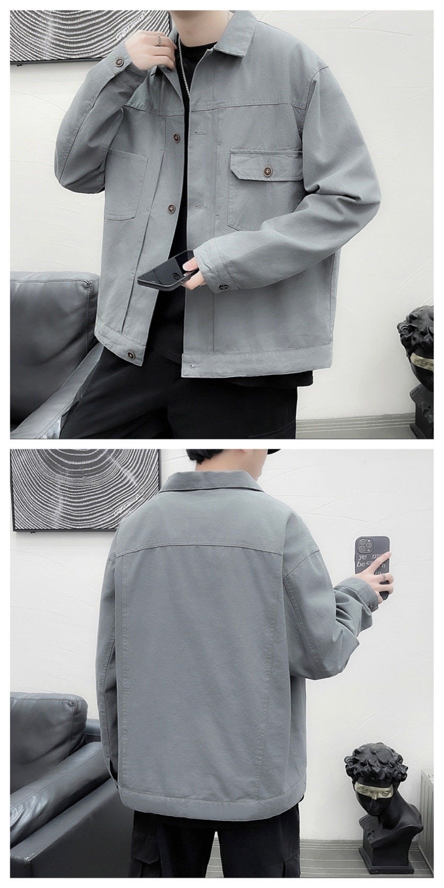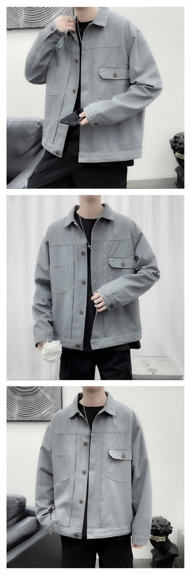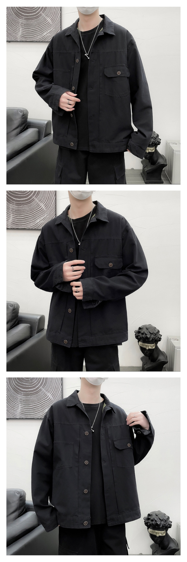 Chaqueta retro simple para hombre, color sólido casual japonés, chaqueta de pareja de manga larga suelta y versátil, ropa interior de moda