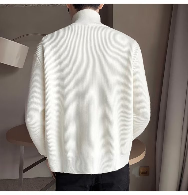 Color sólido giro cuello alto suéter de invierno de los hombres solapa suéter de los hombres de moda juvenil slim fit engrosada camisa de fondo de moda