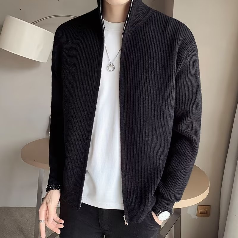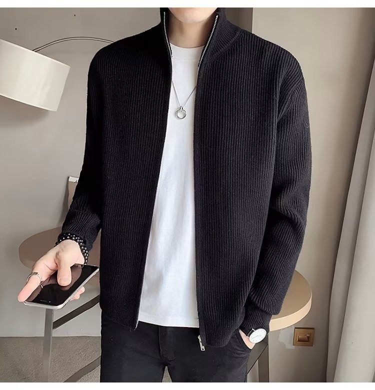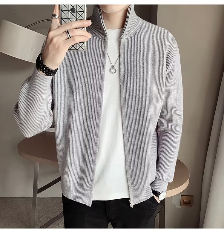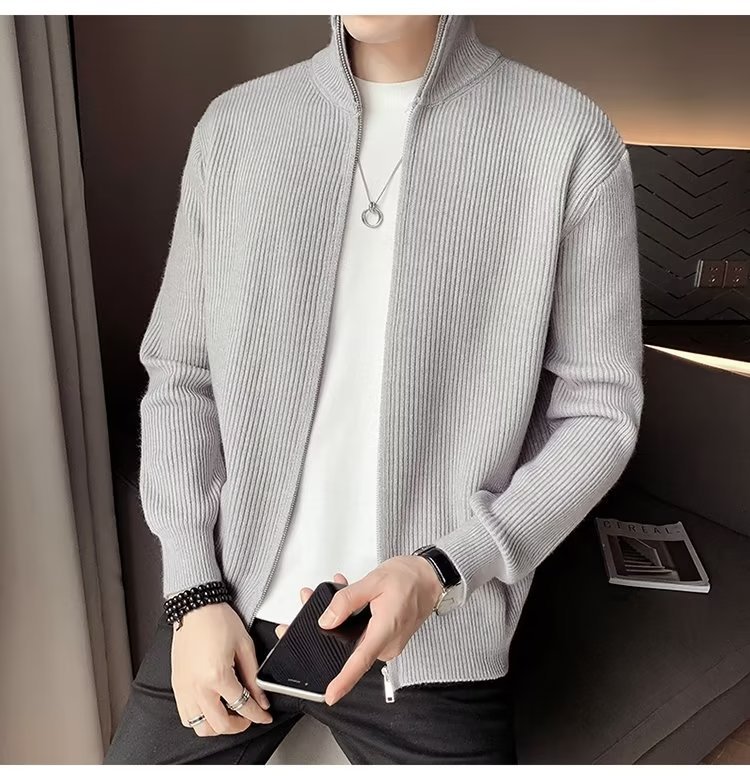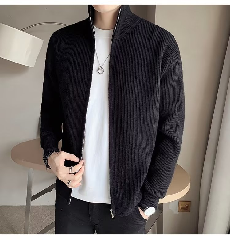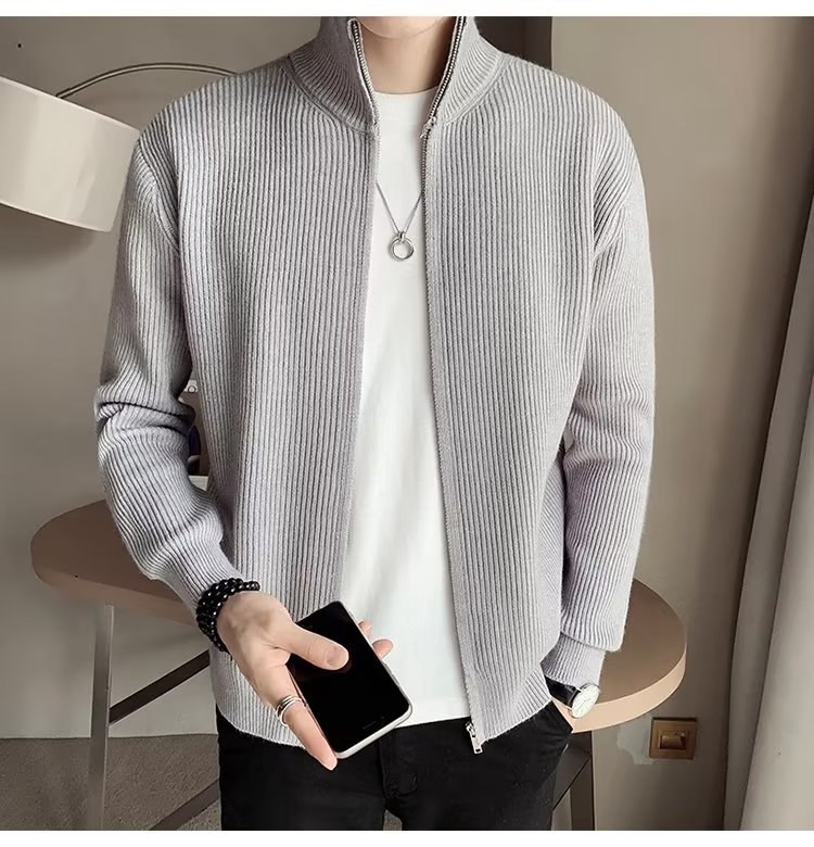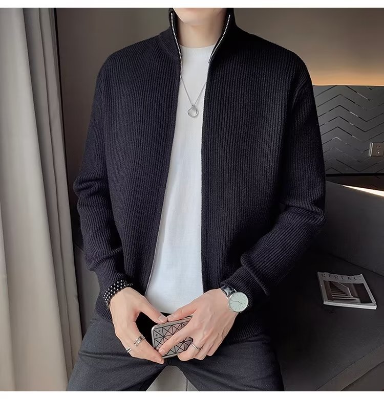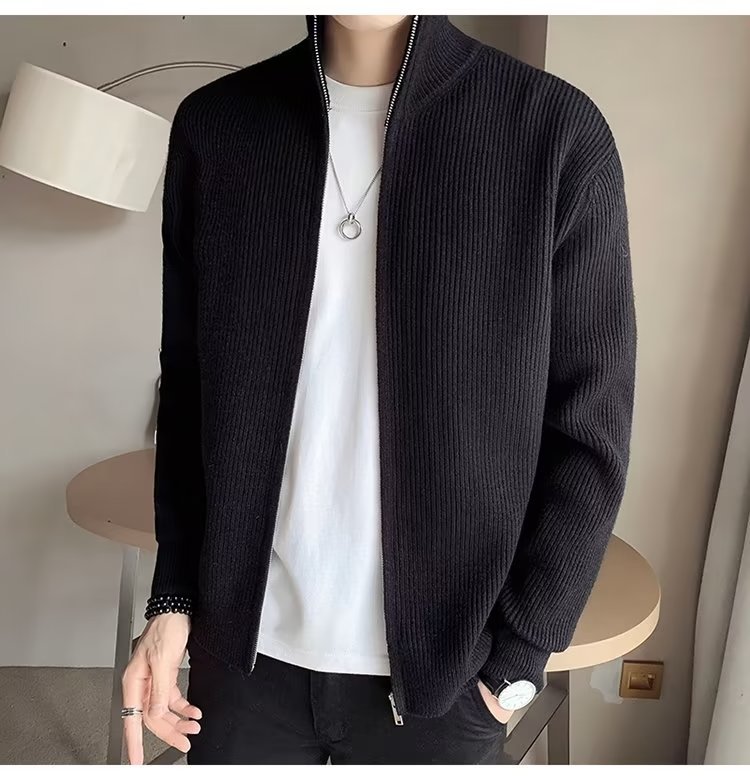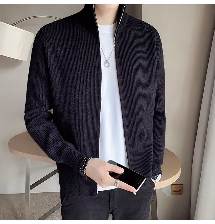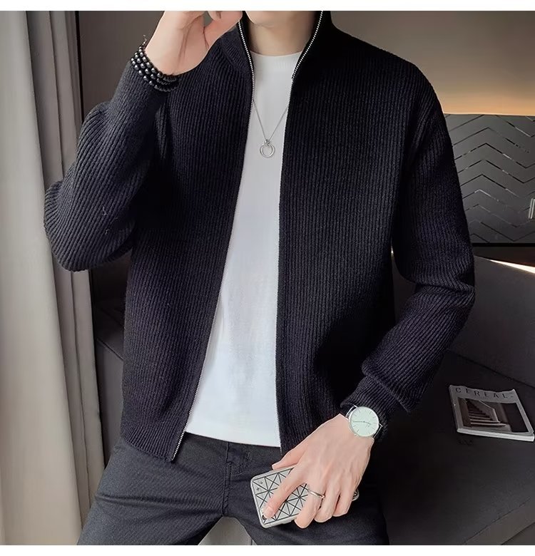 Comercio exterior de algodón Otoño e Invierno nuevos hombres suéter cardigan forrado de lana engrosada abrigo cálido suéter para hombres